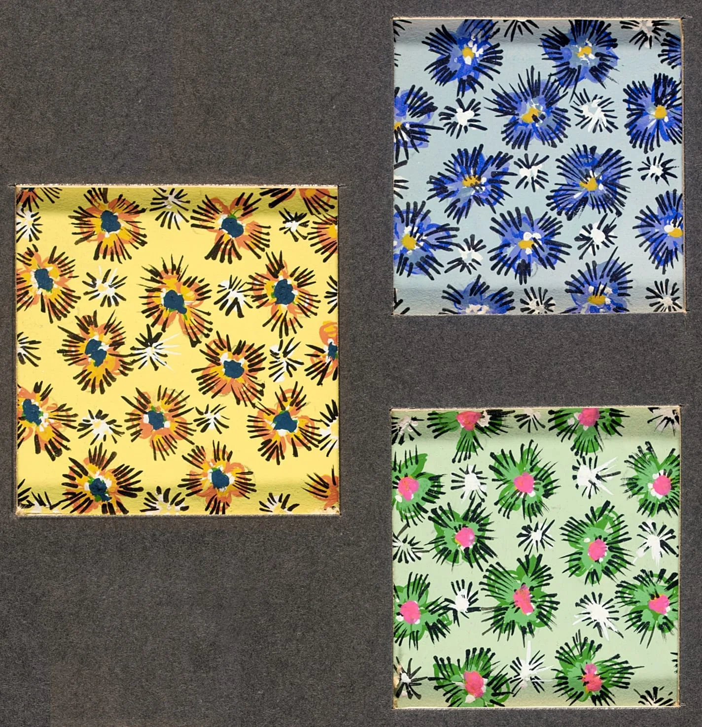 - Sheet: 13 1/4 x 10 in. (33.65 x 25.4 cm); a) Composition: 2 1/4 x 2 1/4 in. (5.71 x 5.71 cm); b-c) Composition: 2 x 2 in. (5.08 x 5.08 cm) each