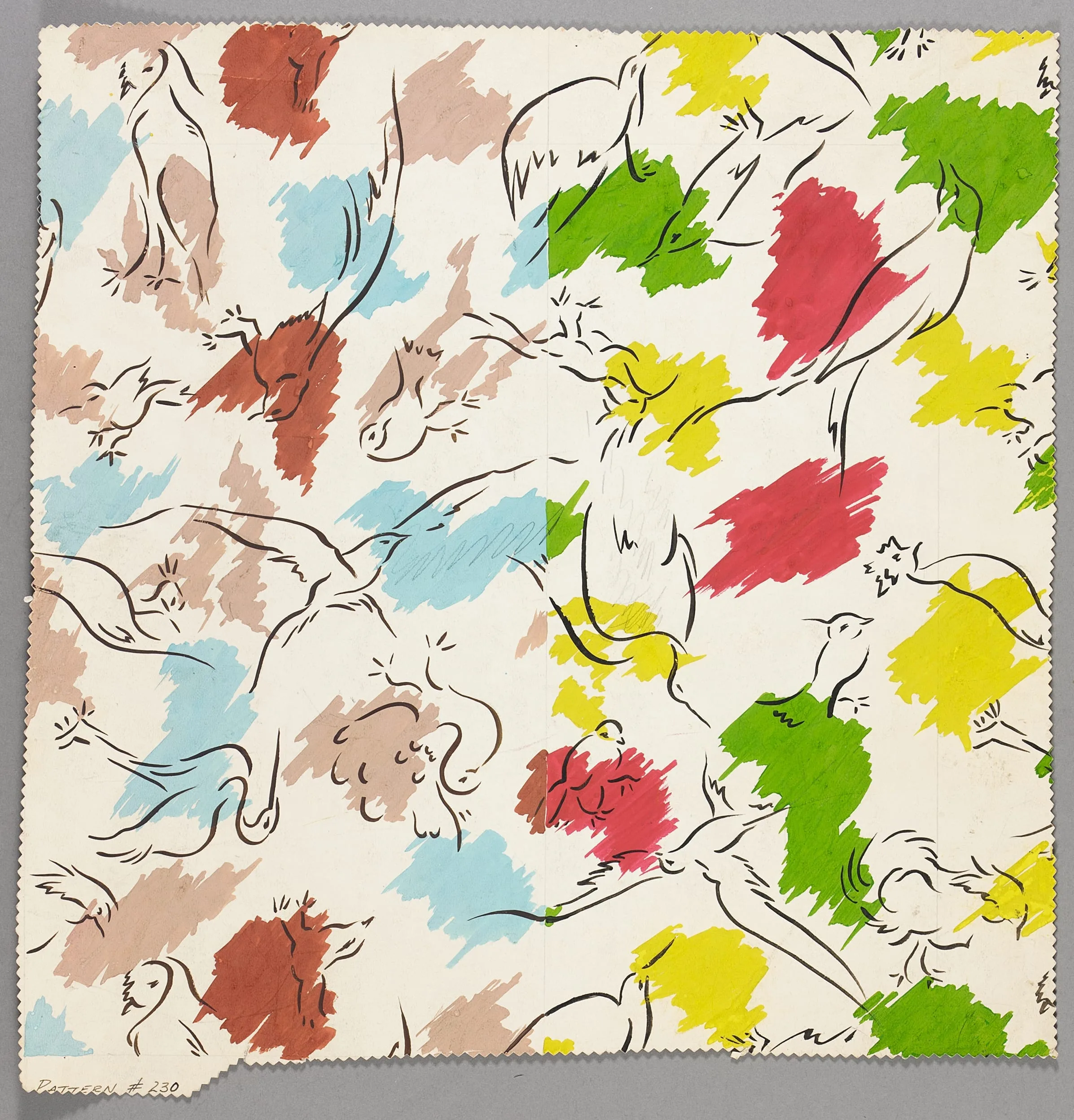 - Textile Design of Two Colorways from 'Birds' (?) Series (Pattern 230)