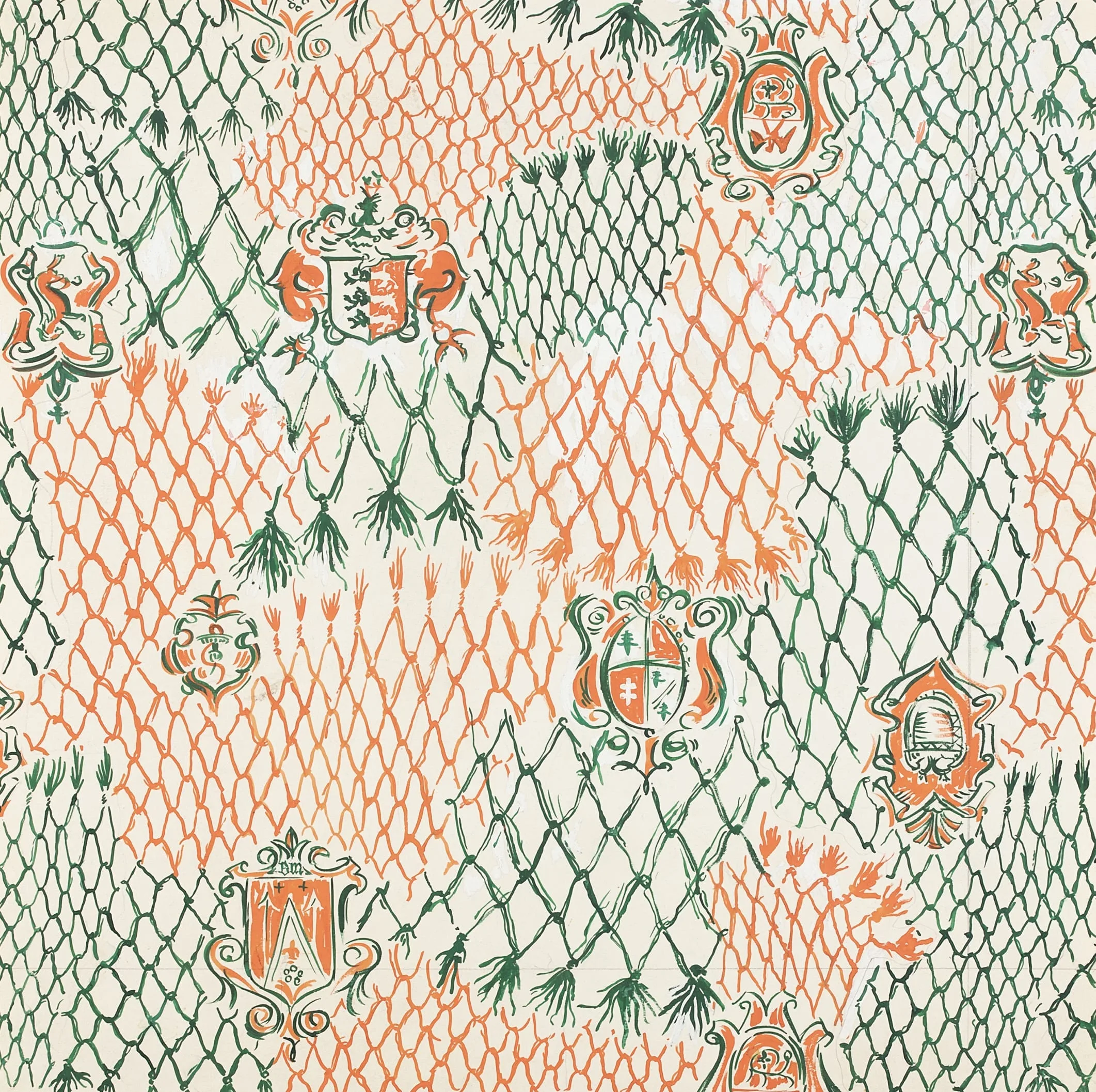 - Textile Design, 'Heraldic Crest' (orange and green)