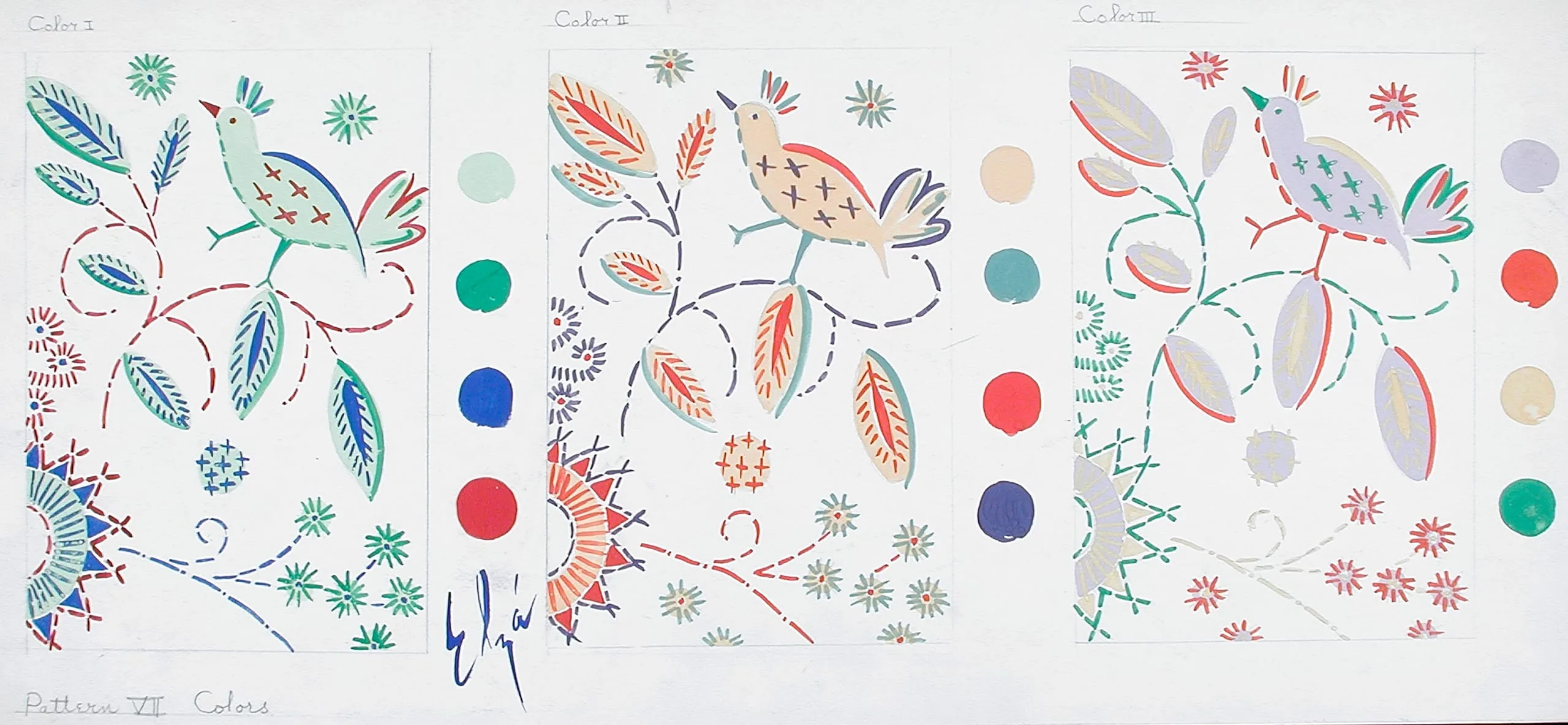 - Textile Design in Three Coloways from 'Fantasy' (?) Series