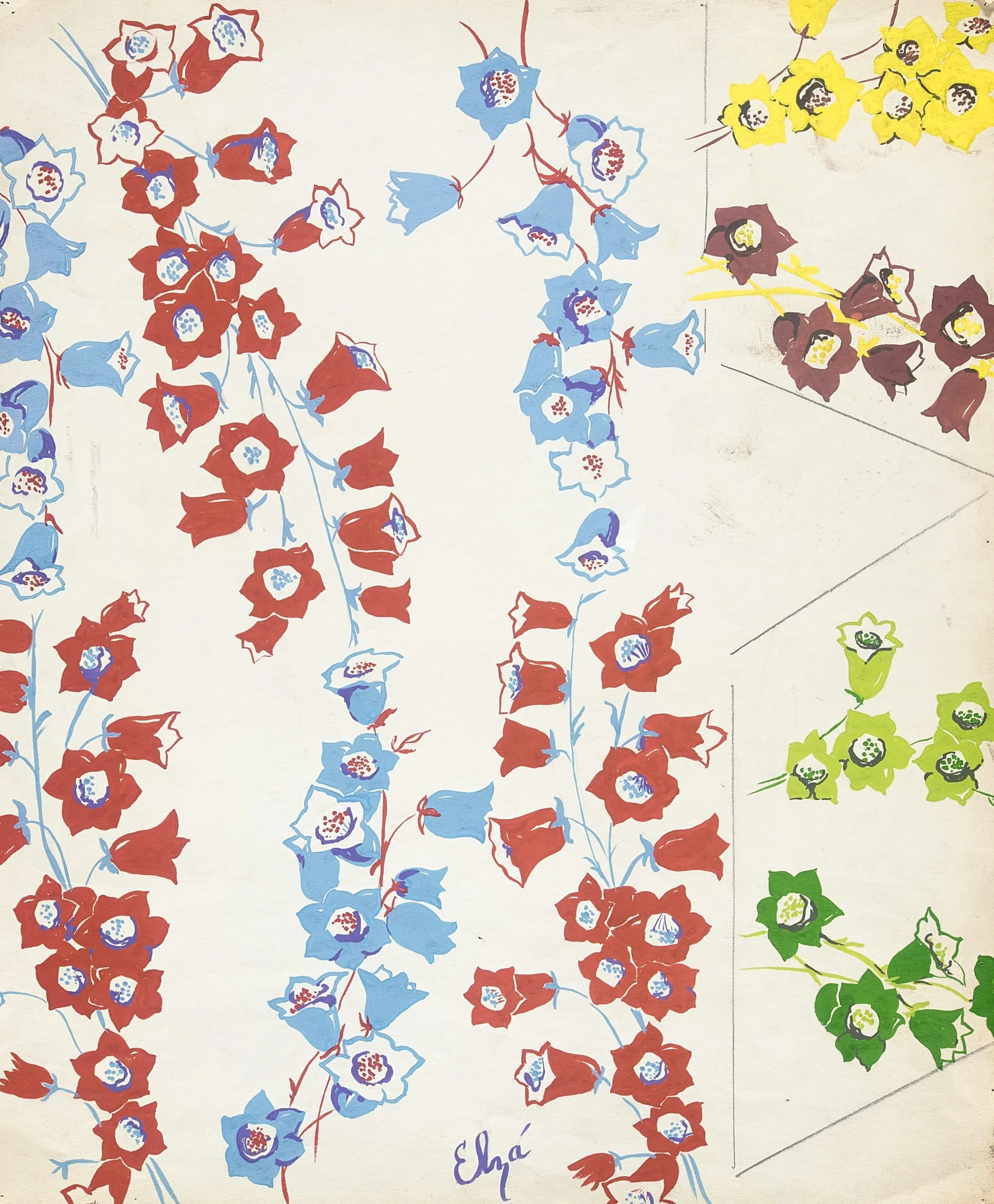- Untitled Textile Design of Flowers (Bells of Ireland?)