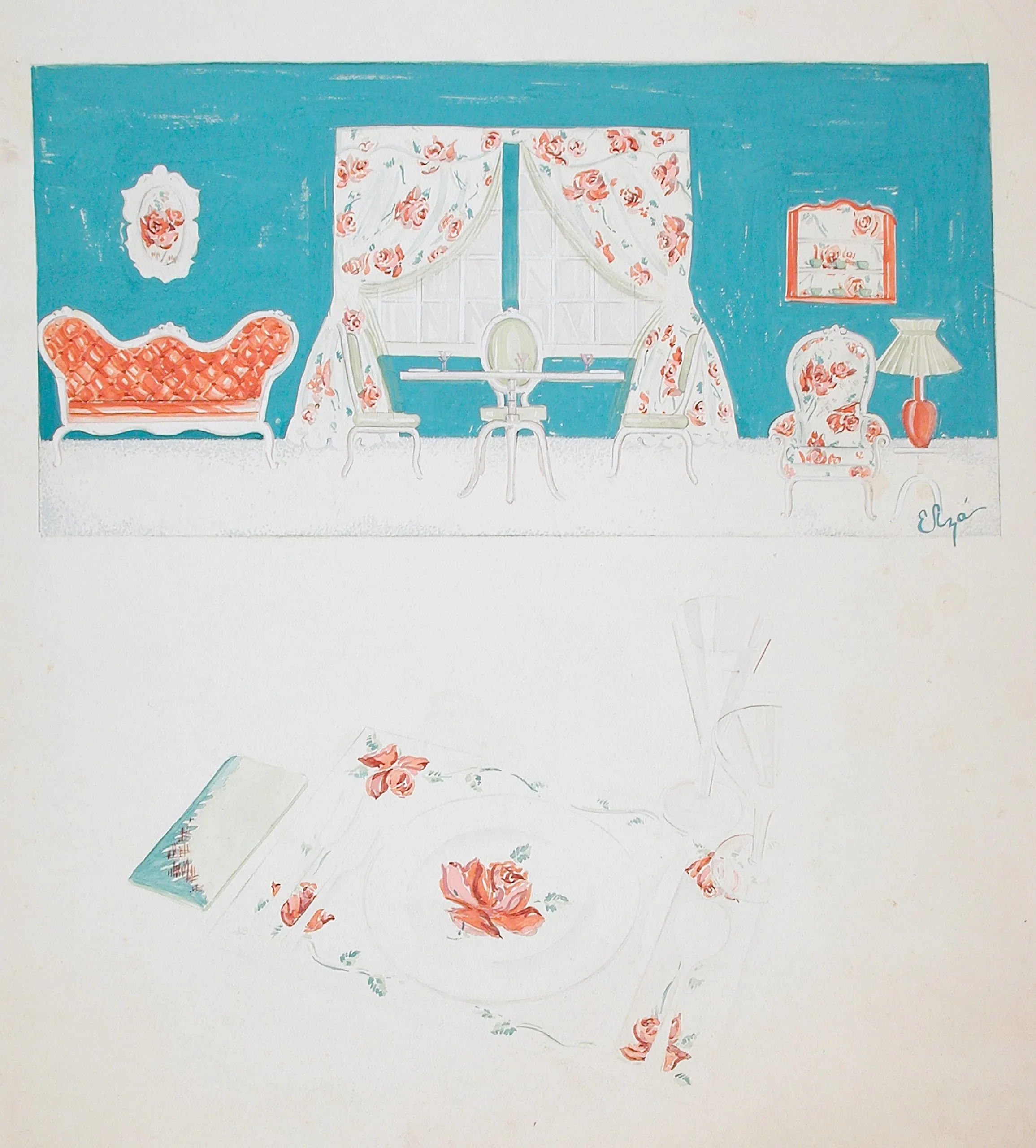 - Textile Design of Rose Pattern in Drapes and Furnishings