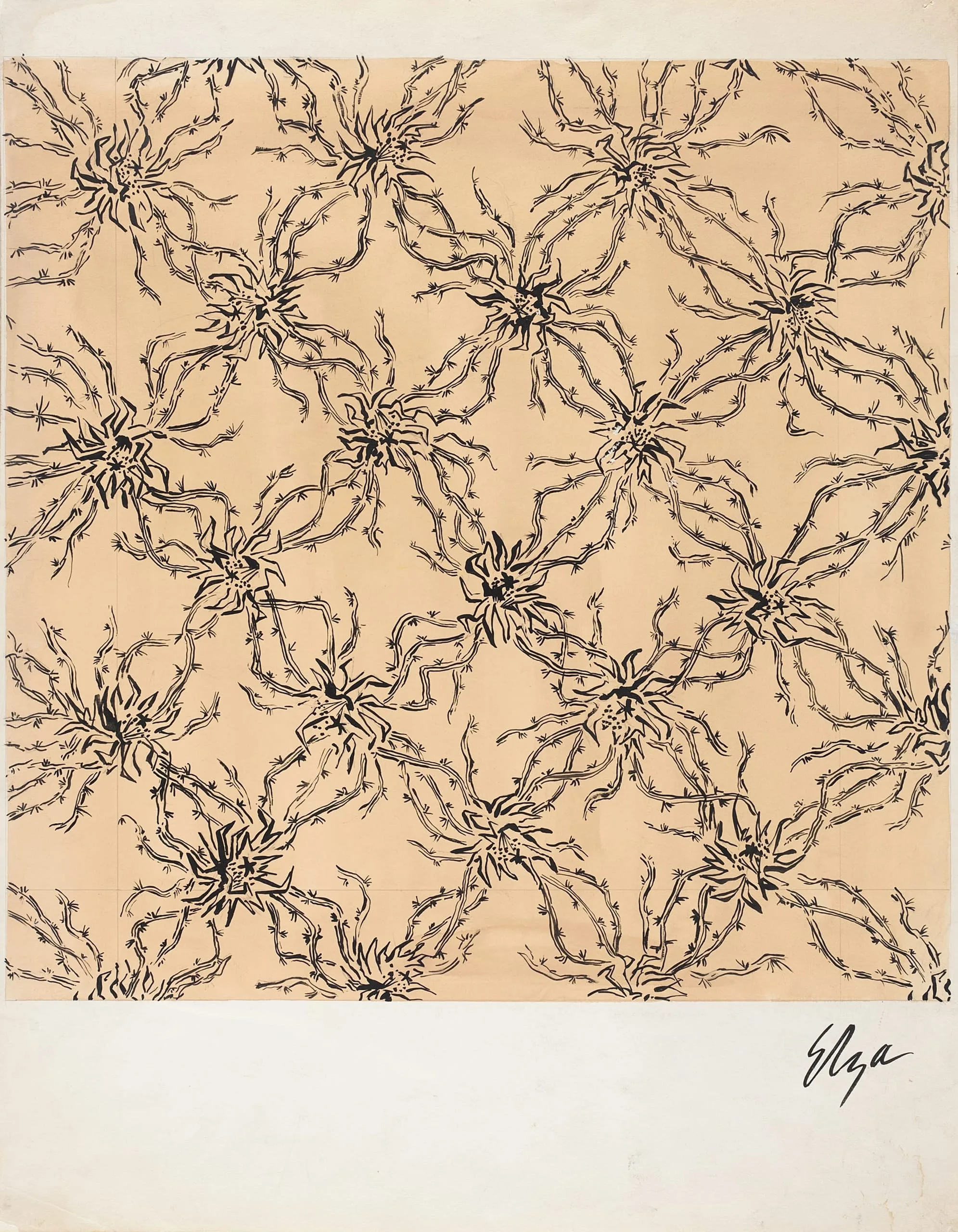 - Textile Design of Flowers on Crossed Diagonal Stems