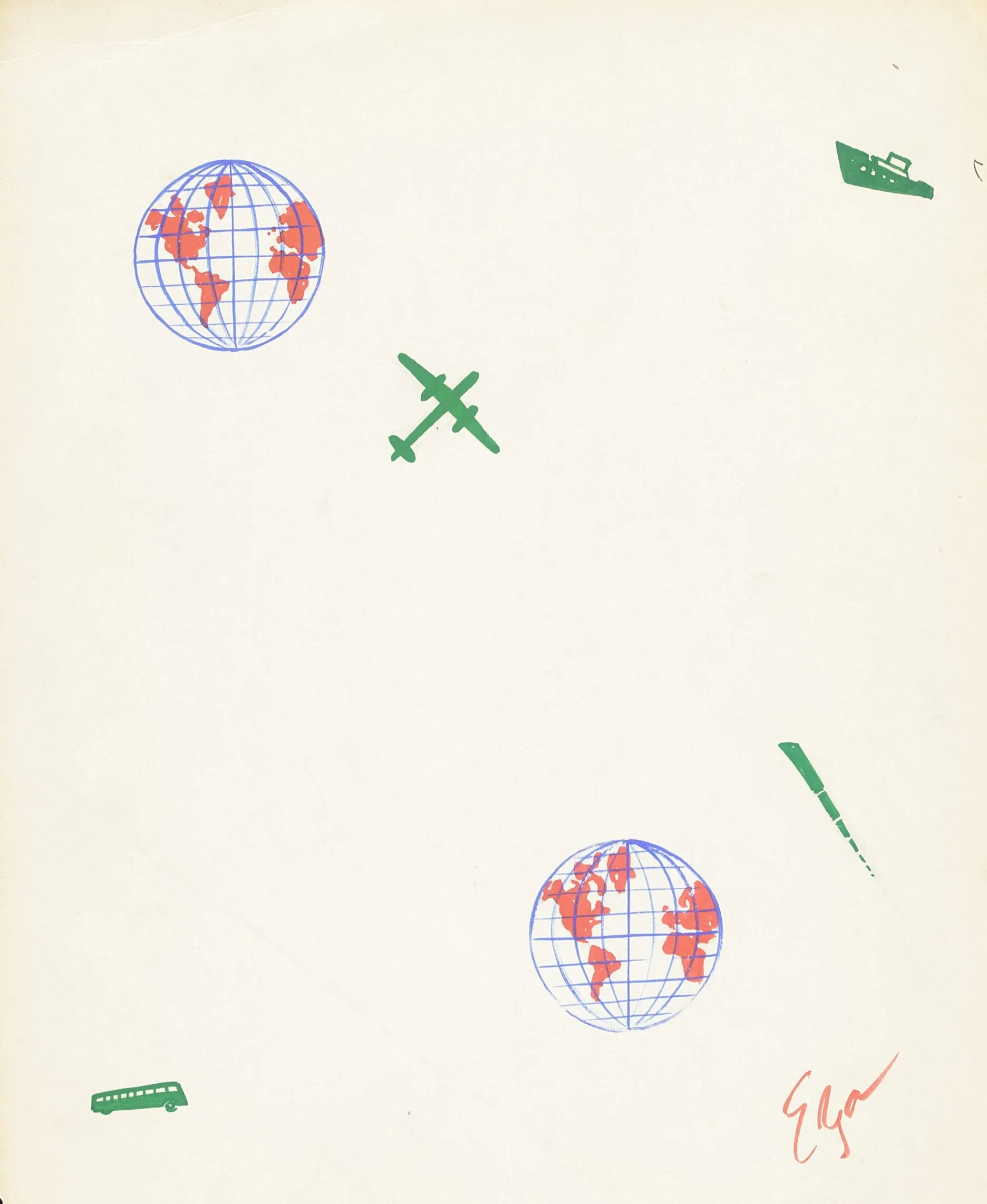- Untitled Textile Design of Globe, Airplane, Boat and Bus