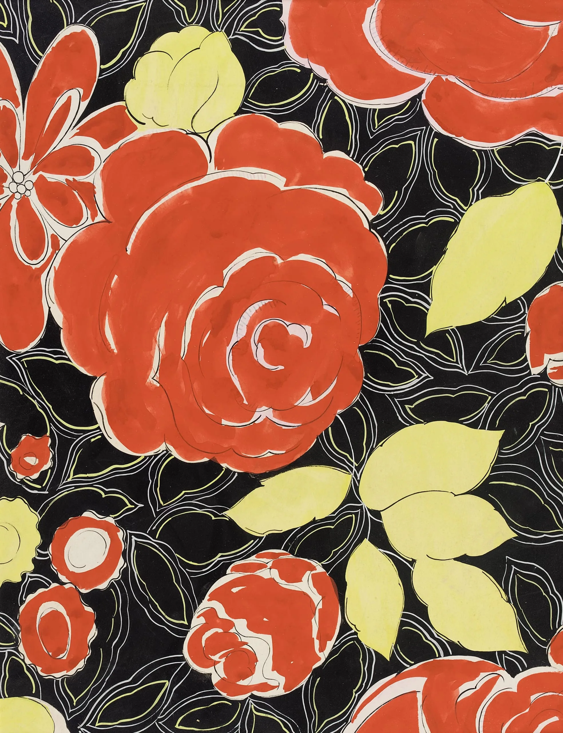 - Textile Design of Red Roses, 'Pattern 2074 E'