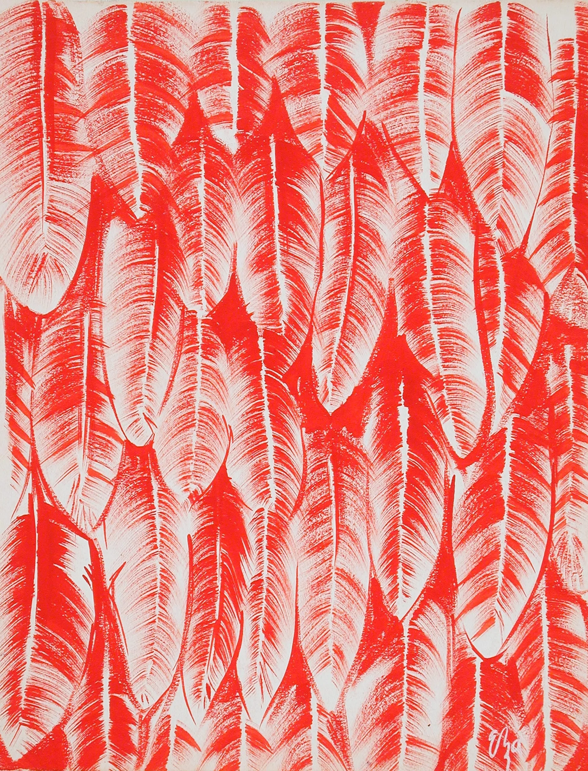 - Unfinished Textile Design from 'Birds of a Feather' Series; Red, Black and White Colorway