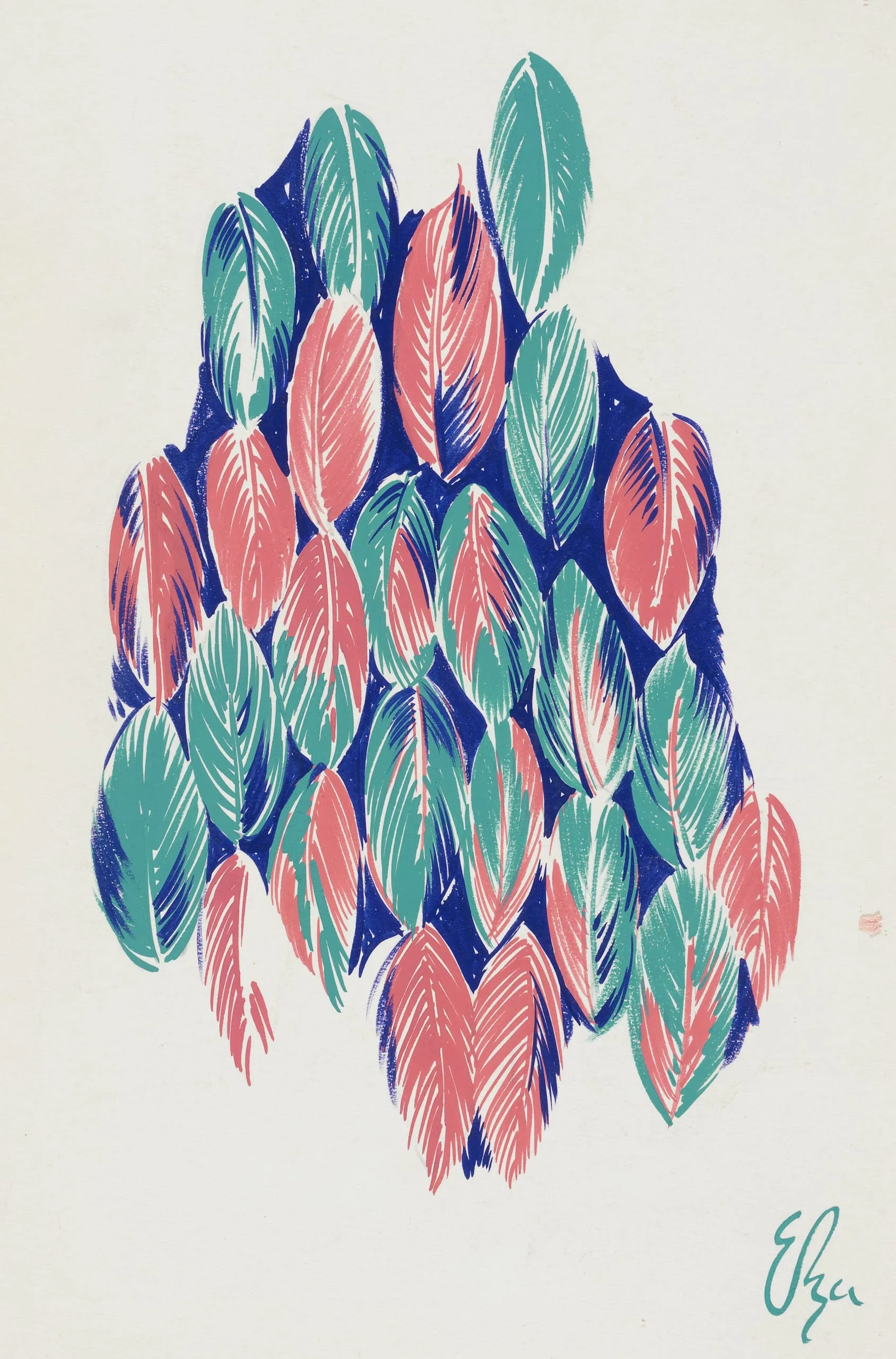 - Textile Design from 'Birds of a Feather' Series; Red and Green Colorway