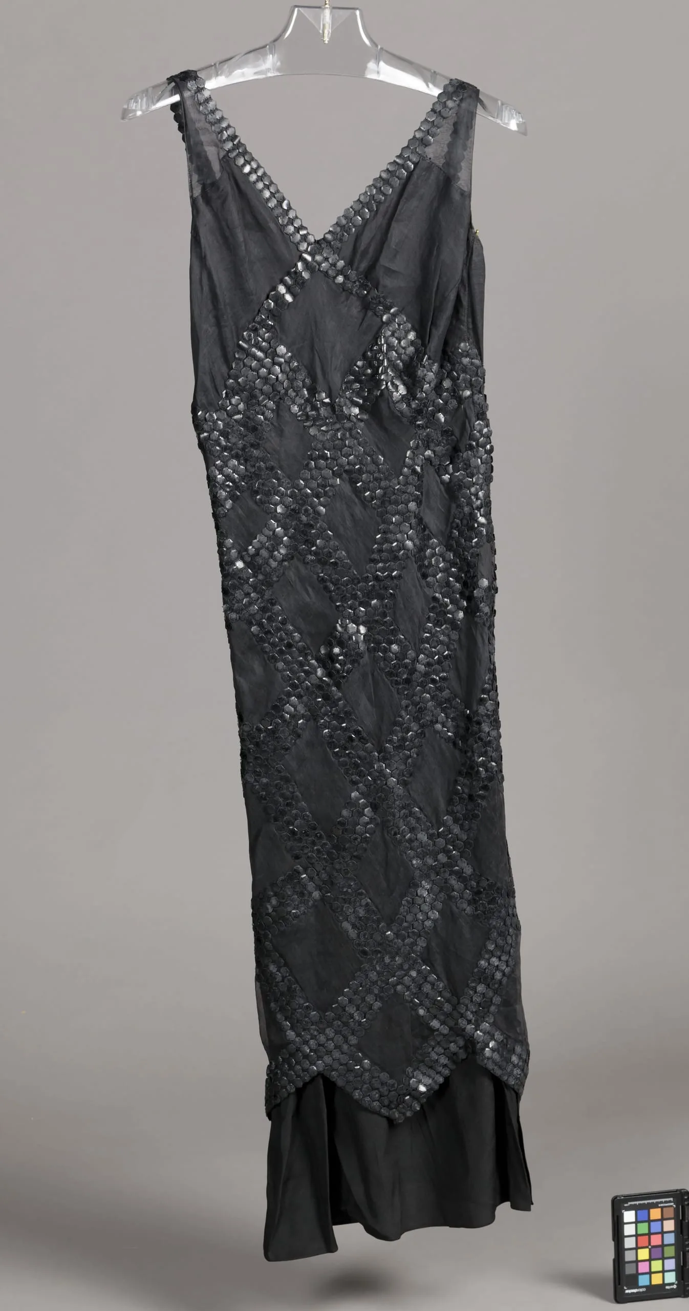 - Silk plain weave with celluloid paillettes and rayon plain weave (crepe)