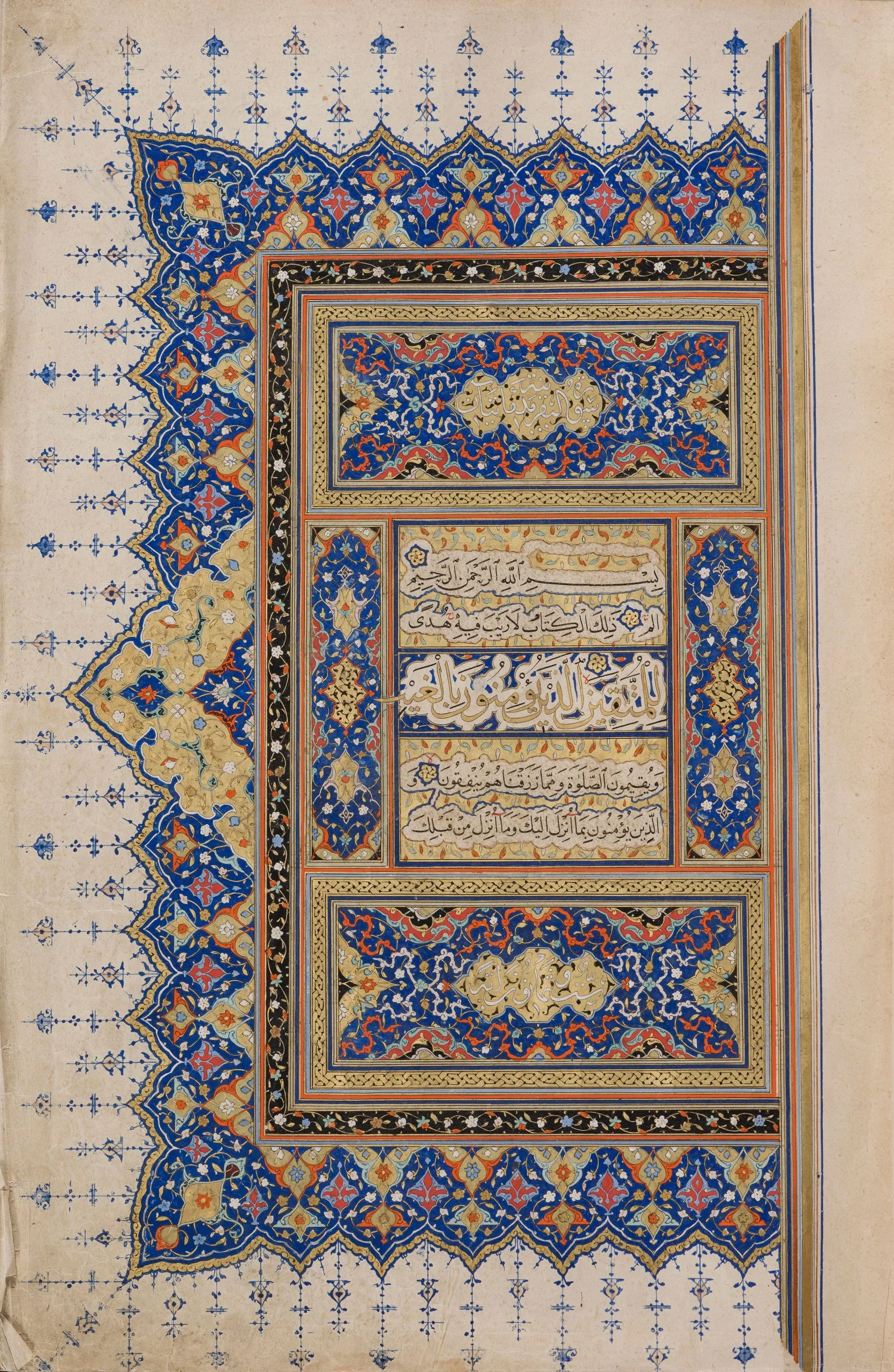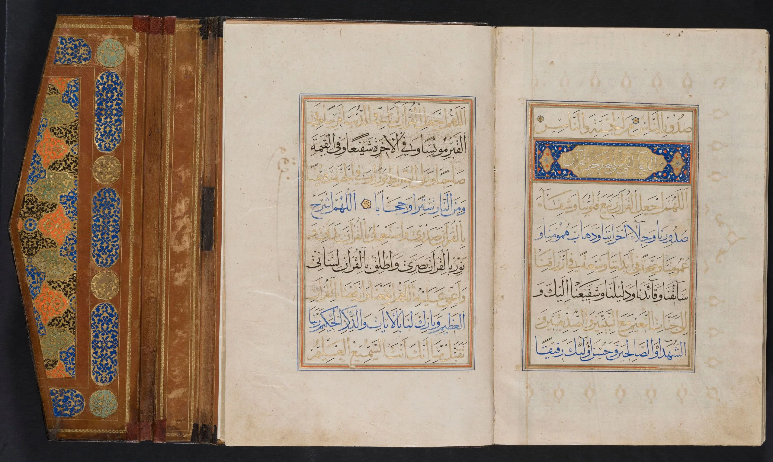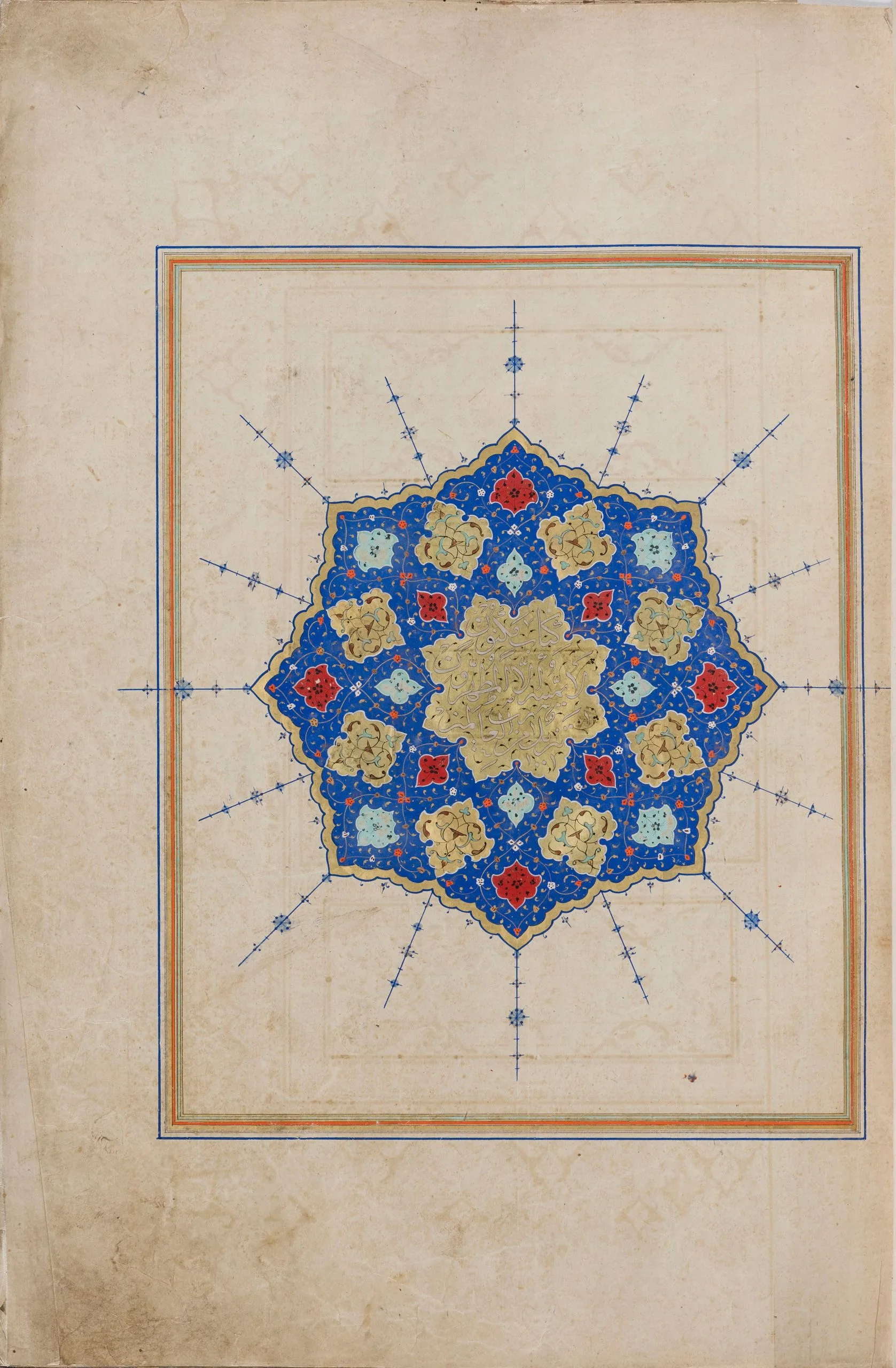 Shiraz was a significant and highly prolific center for the production of luxury manuscripts, including copies of the Qur’an, some of which were intended for export. In fact, there is evidence to suggest that this famed southern Iranian city was a major supplier of deluxe books for Turkey. Manuscripts of the Qur’an produced in Shiraz, including richly illuminated examples, must also have arrived at the Ottoman court as diplomatic gifts. Such was likely the case with this manuscript. According to a notation at the end of the text, part of which is a replacement for the original, perhaps contemporaneous with the eighteenth-century Ottoman binding, Sultan Selim II (r. 1566–74) endowed the manuscript in Edirne, presumably for the magnificent mosque complex he built there in 1568–74.