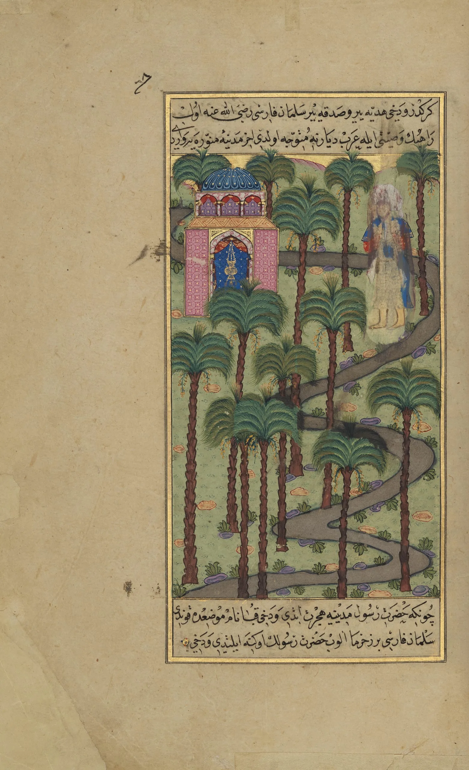 - Ink, opaque watercolor and gold on paper