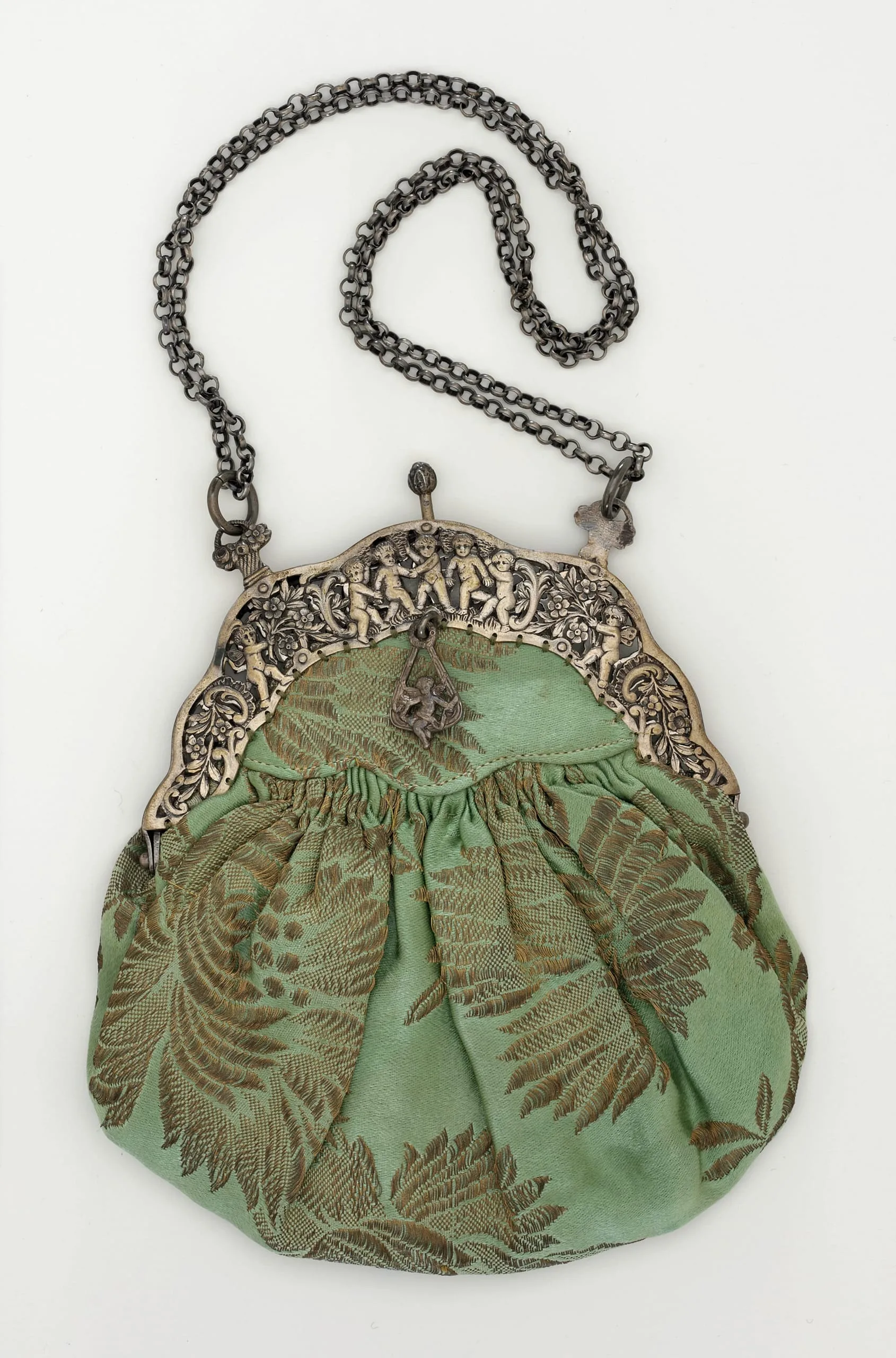 - Brocaded silk, silver, silk satin, metallic thread