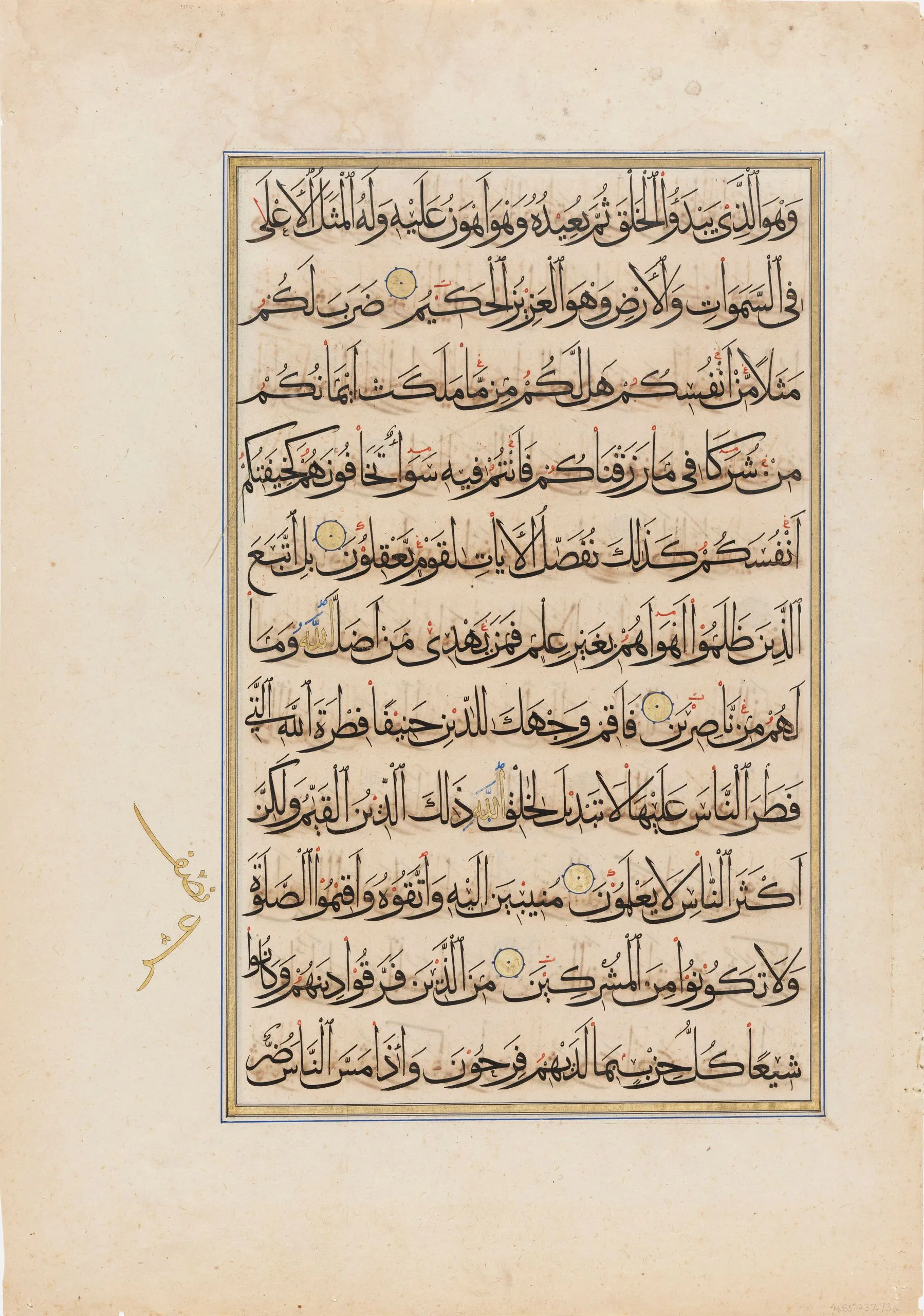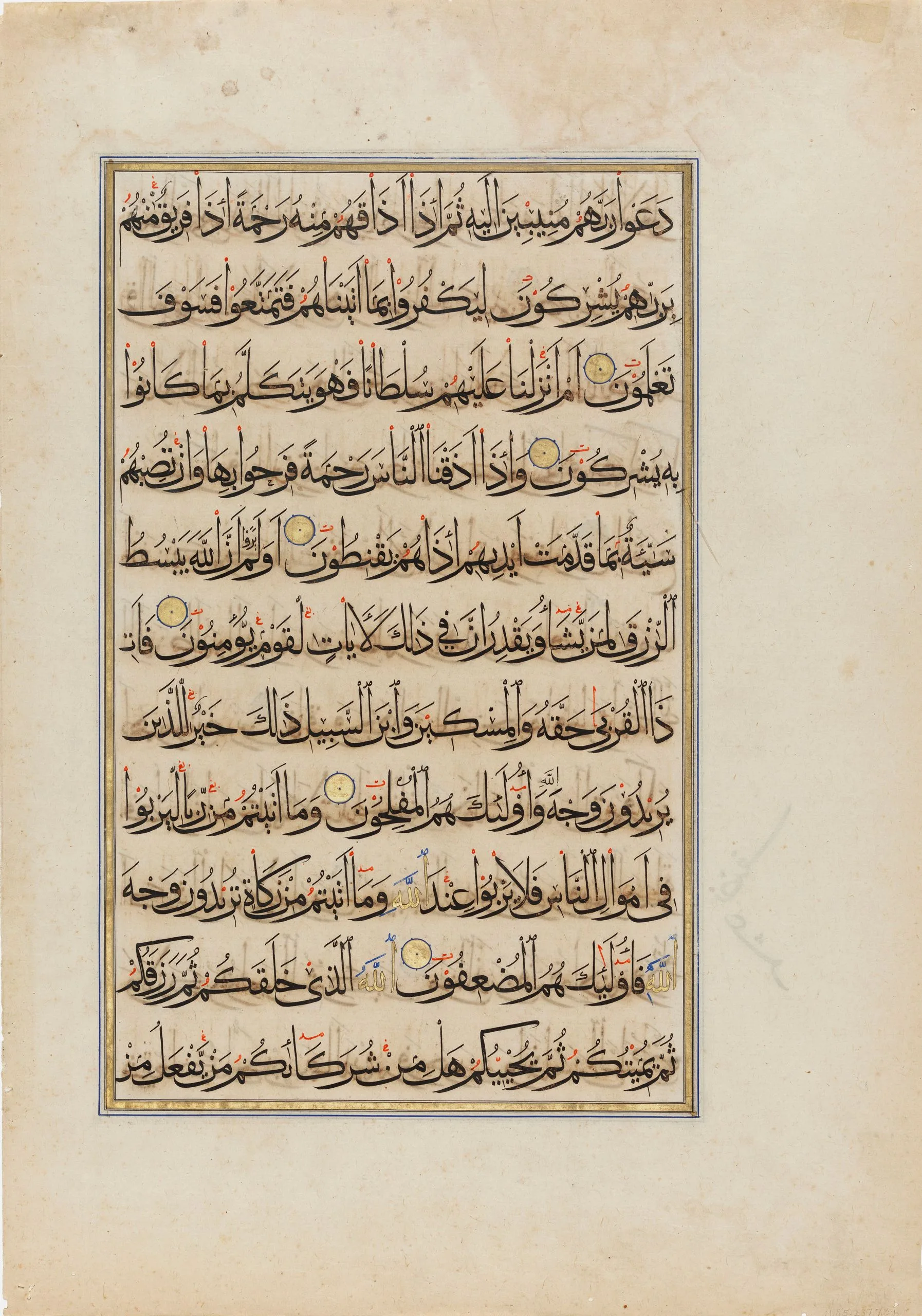 - Page from a Manuscript of the Qur'an (30:27-33; 30:33-40)