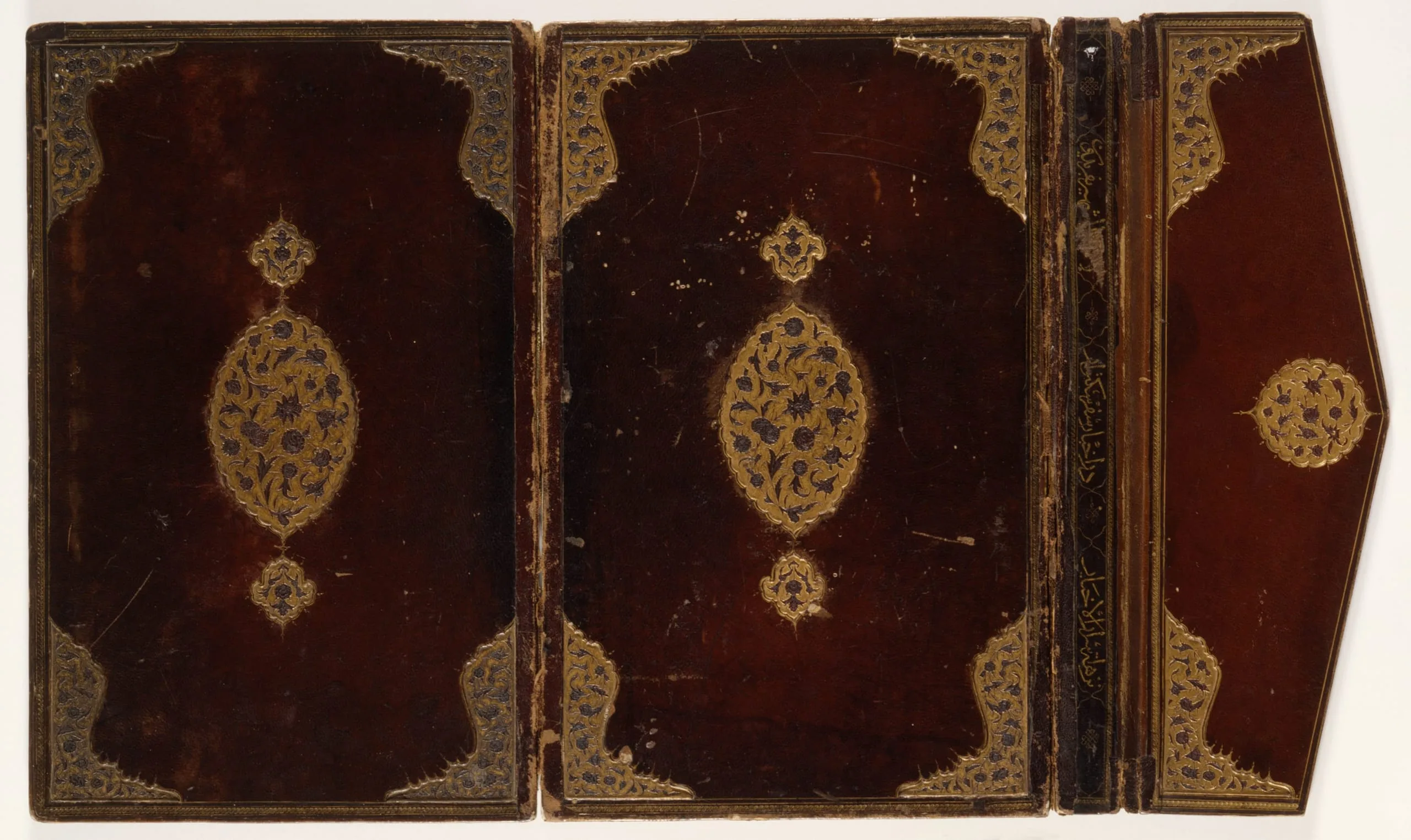 - Leather with stamped and gilded decoration