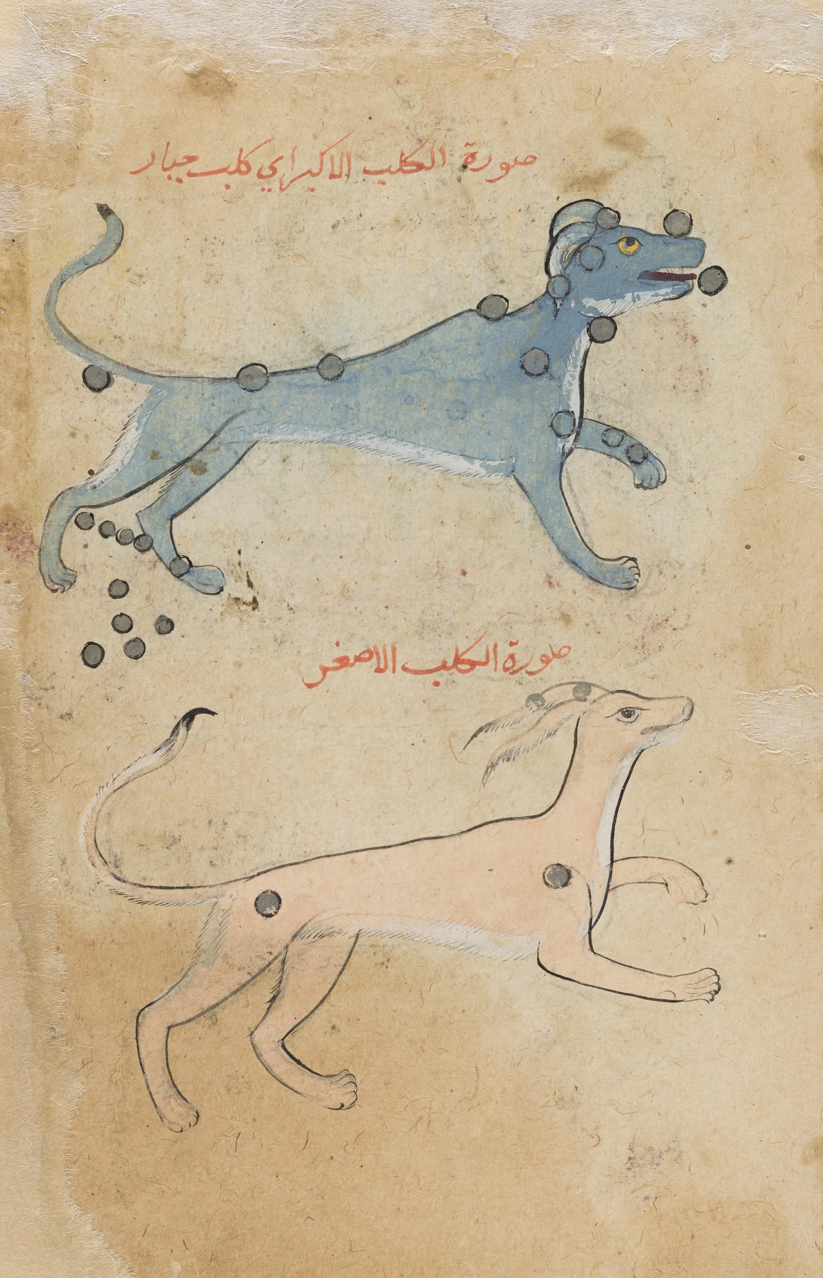Verso: The Constellations Canis Major (Large Dog; al-kalb al-akbar) and Canis Minor (Small Dog; al-kalb al-asghar).