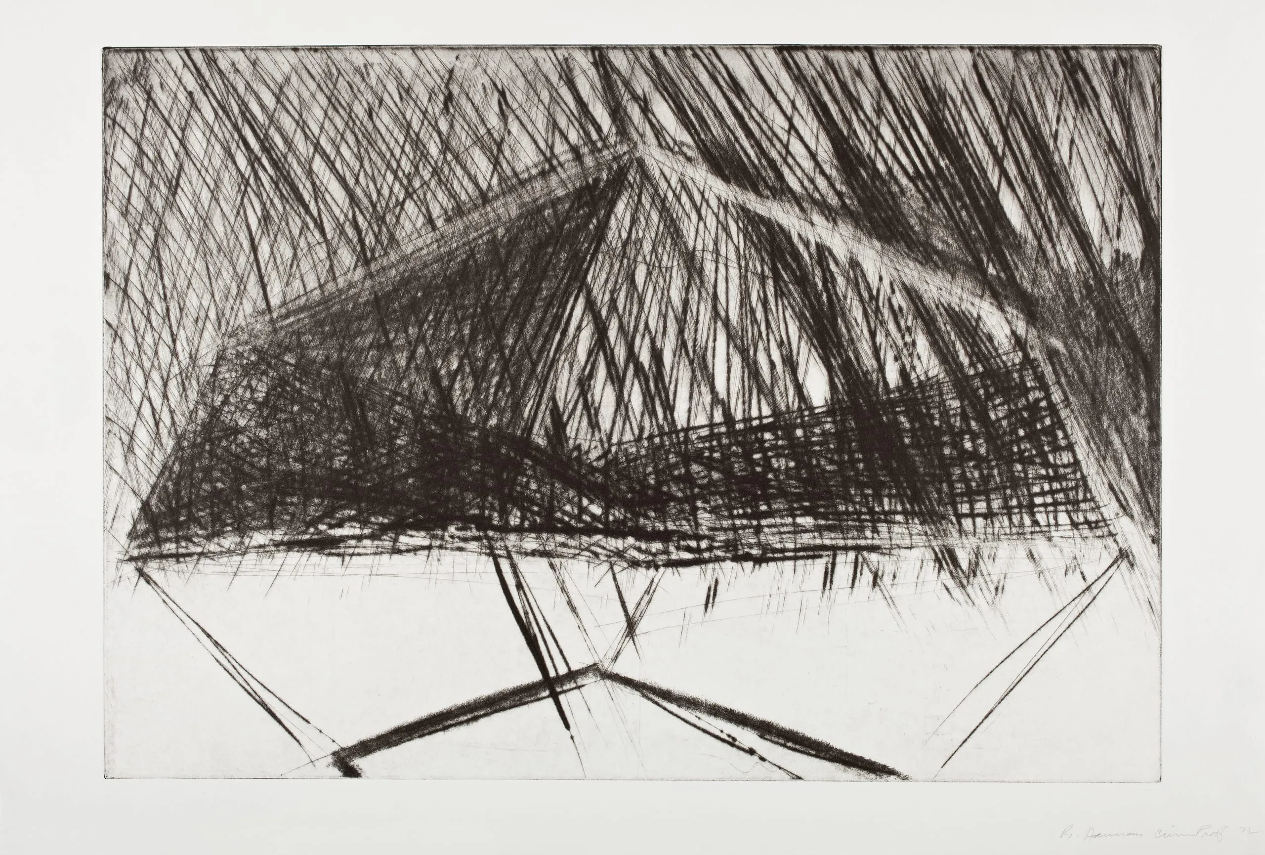 - One-color drypoint (drawn with scribe, roulette, and file) on Rives BFK paper, printed in one run from one copper plate
