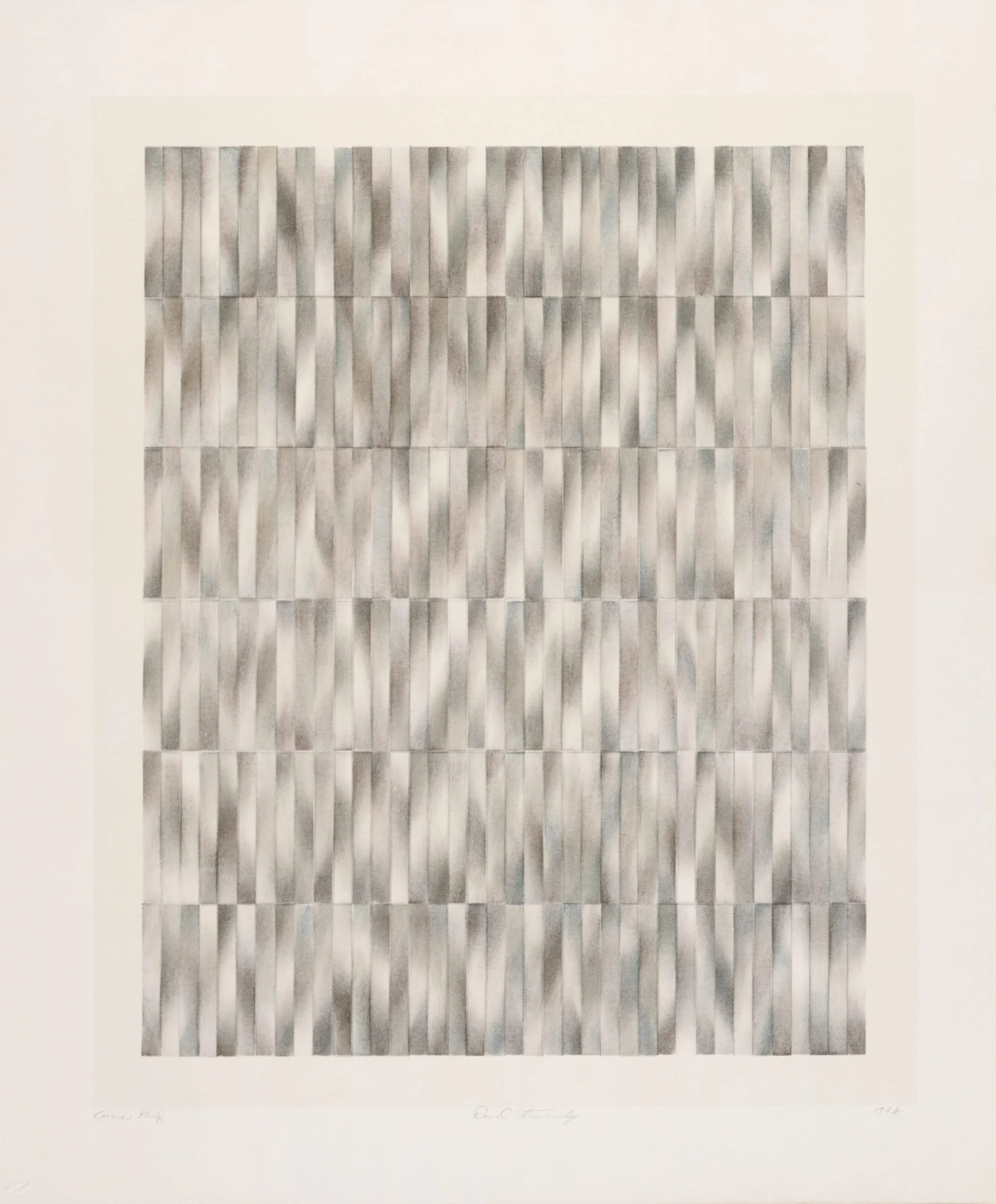 - Four-color lithograph and screenprint on Arches paper, printed in four runs from two stones and one screen