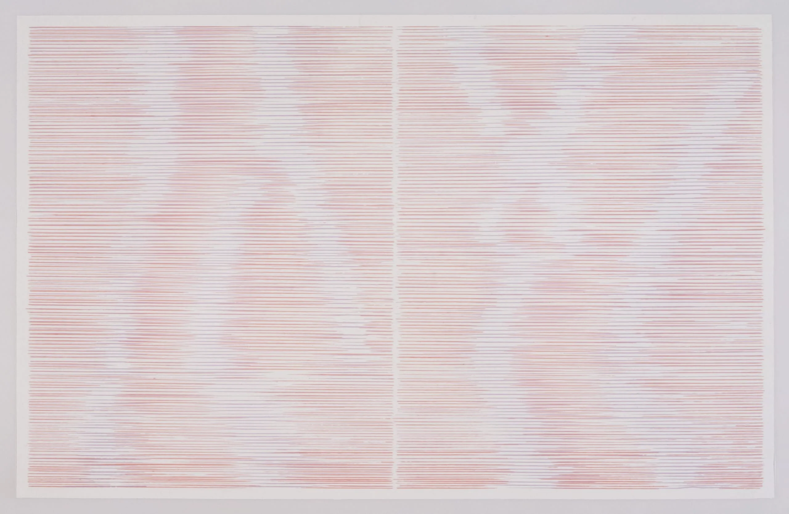 - Two-color and clear varnish screenprint on acetate, printed in three runs from three screens