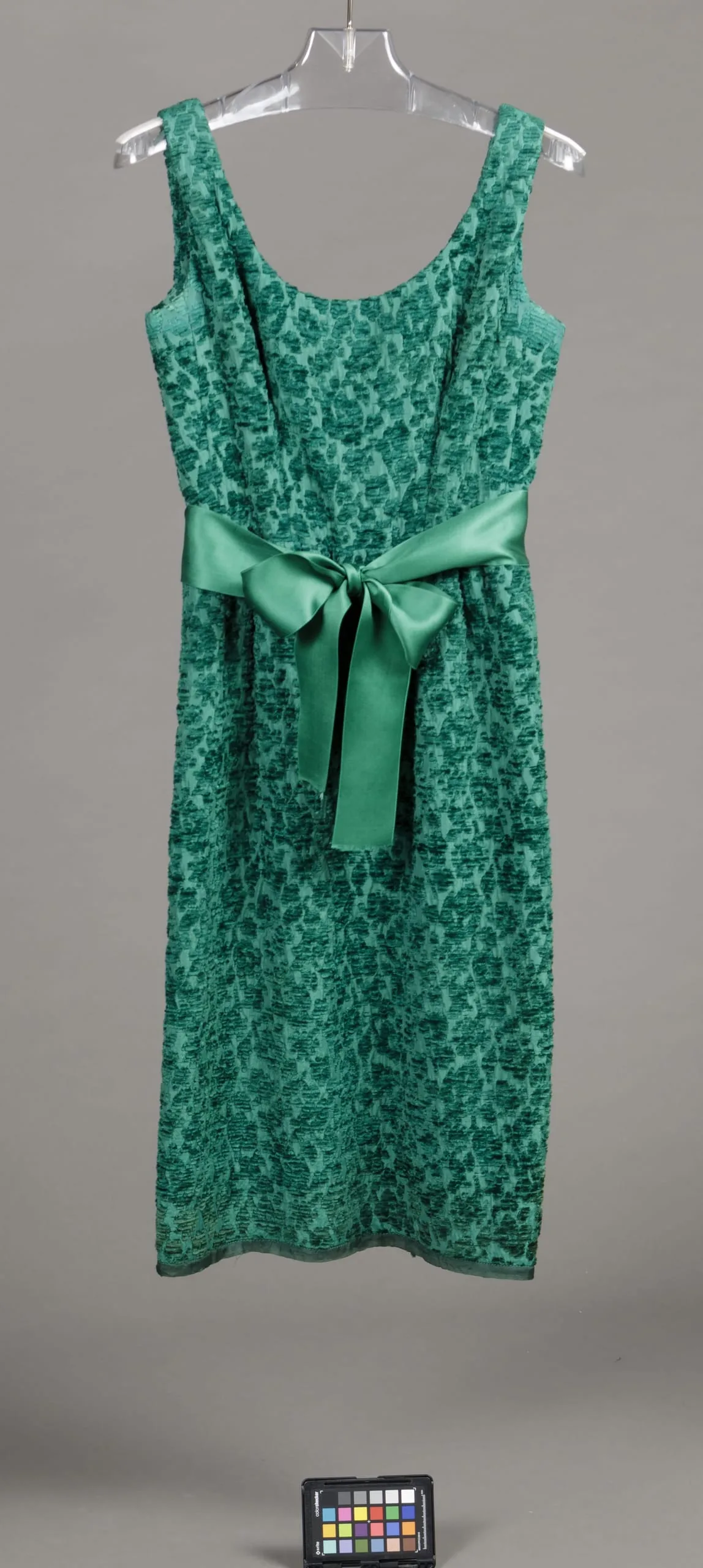 - Dress: silk plain weave with supplementary silk chenille weft patterning