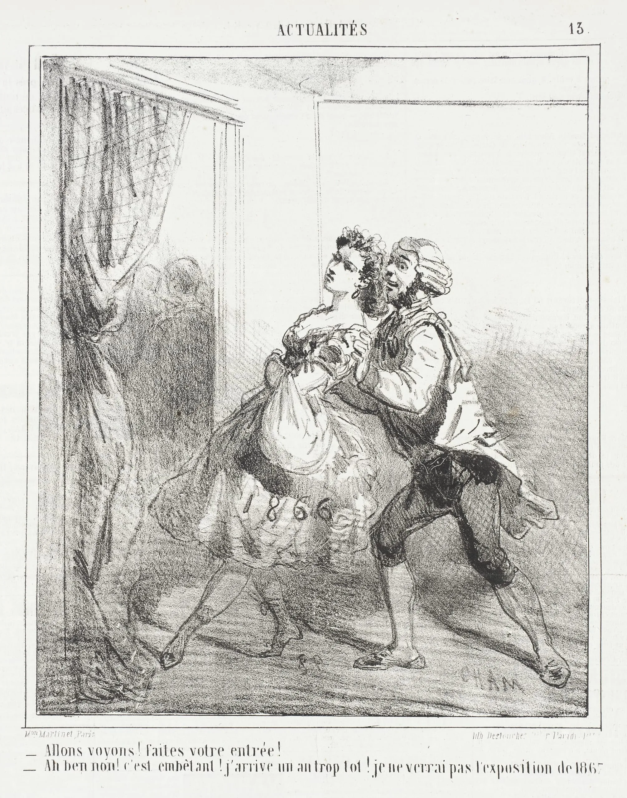 - Allons voyons! Faites votre entrée. Ah ben non! -C'est embêtant. J'arrive un an trop tot! Je ne verrai pas l'exposition de 1867.