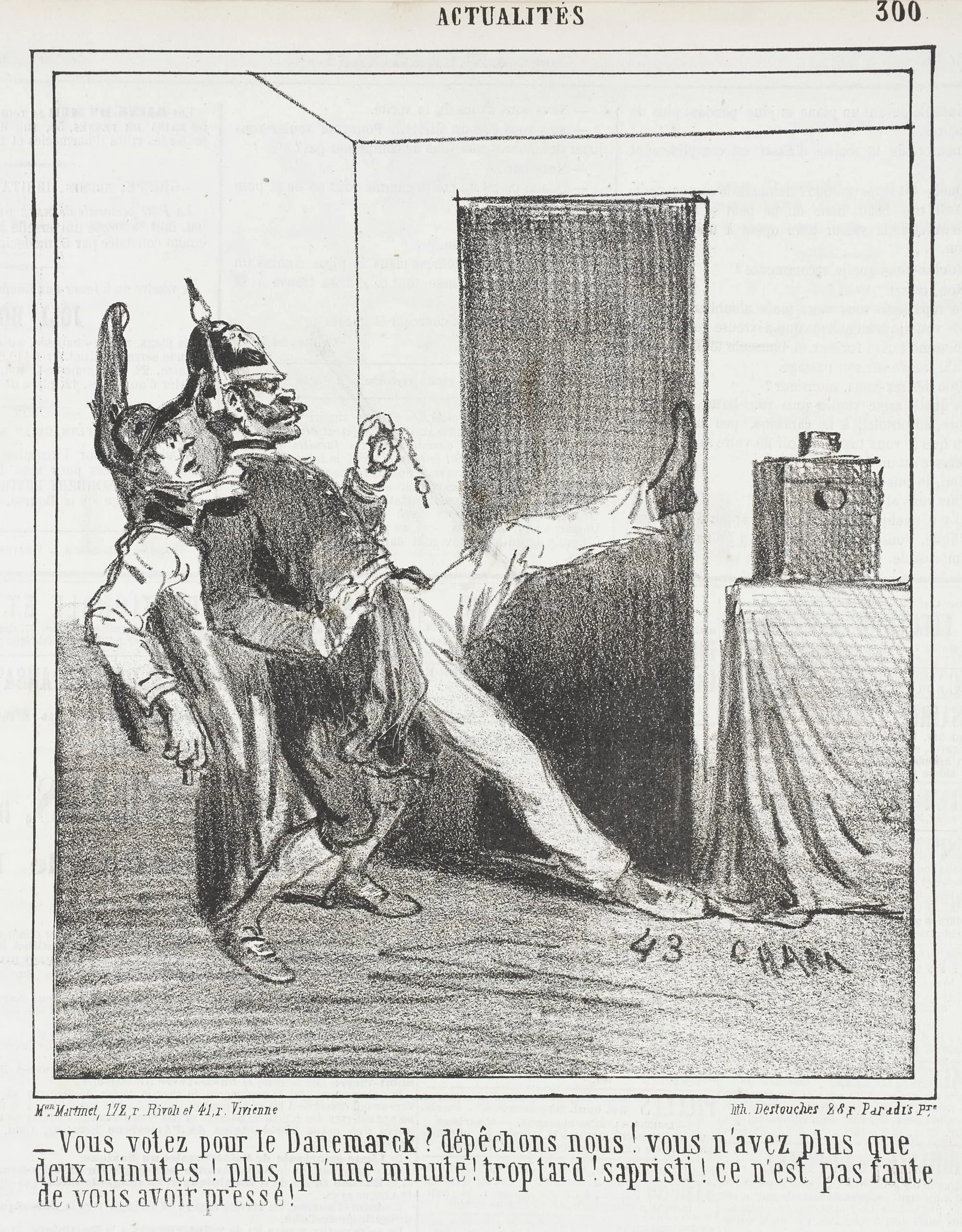 - Vous votez pour le Danemarck? Dépechons nous! vous n'avez plus que deux minutes! plus qu'une minute! Trop tard! Sapristi! Ce n'est pas faute de vous avoir pressé!