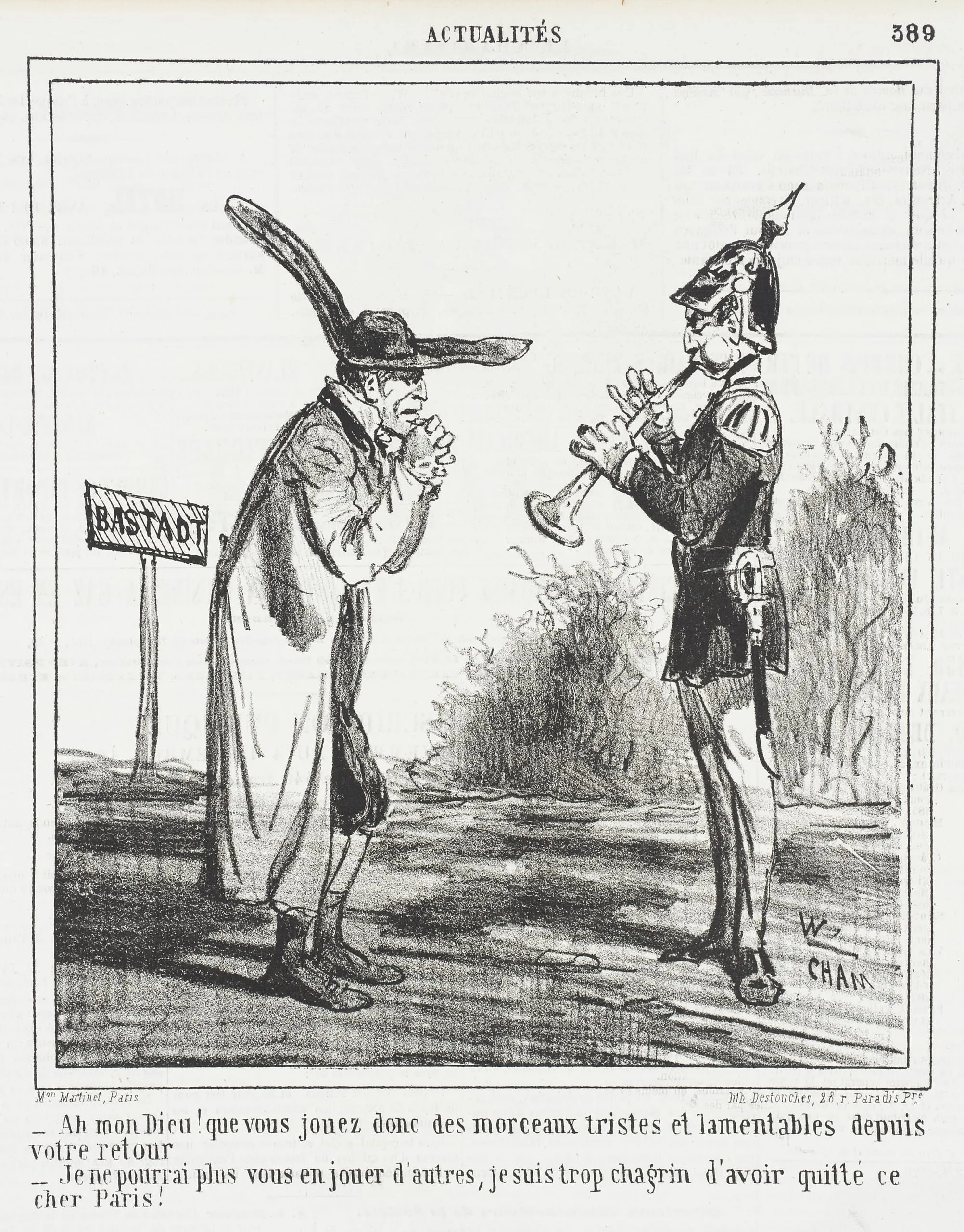 - Ah, mon Dieu! Que vous jouez donc des morceaux tristes et lamentables depuis votre retour. -Je ne pourrai plus vous en jouer d'autres, je suis trop chagrin d'avoir quitté ce cher Paris!