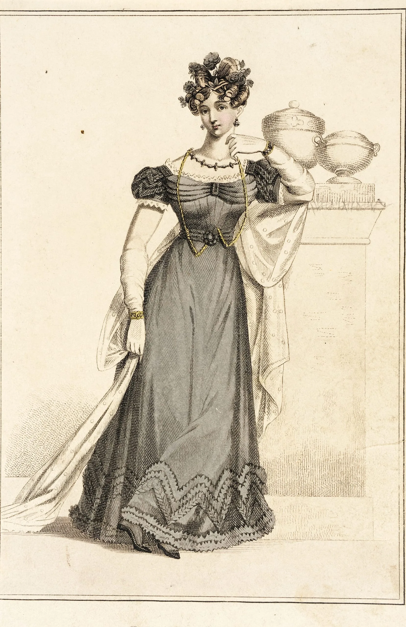 Fashion Plate, 'Evening Costume' for 'La Belle Assemblée'