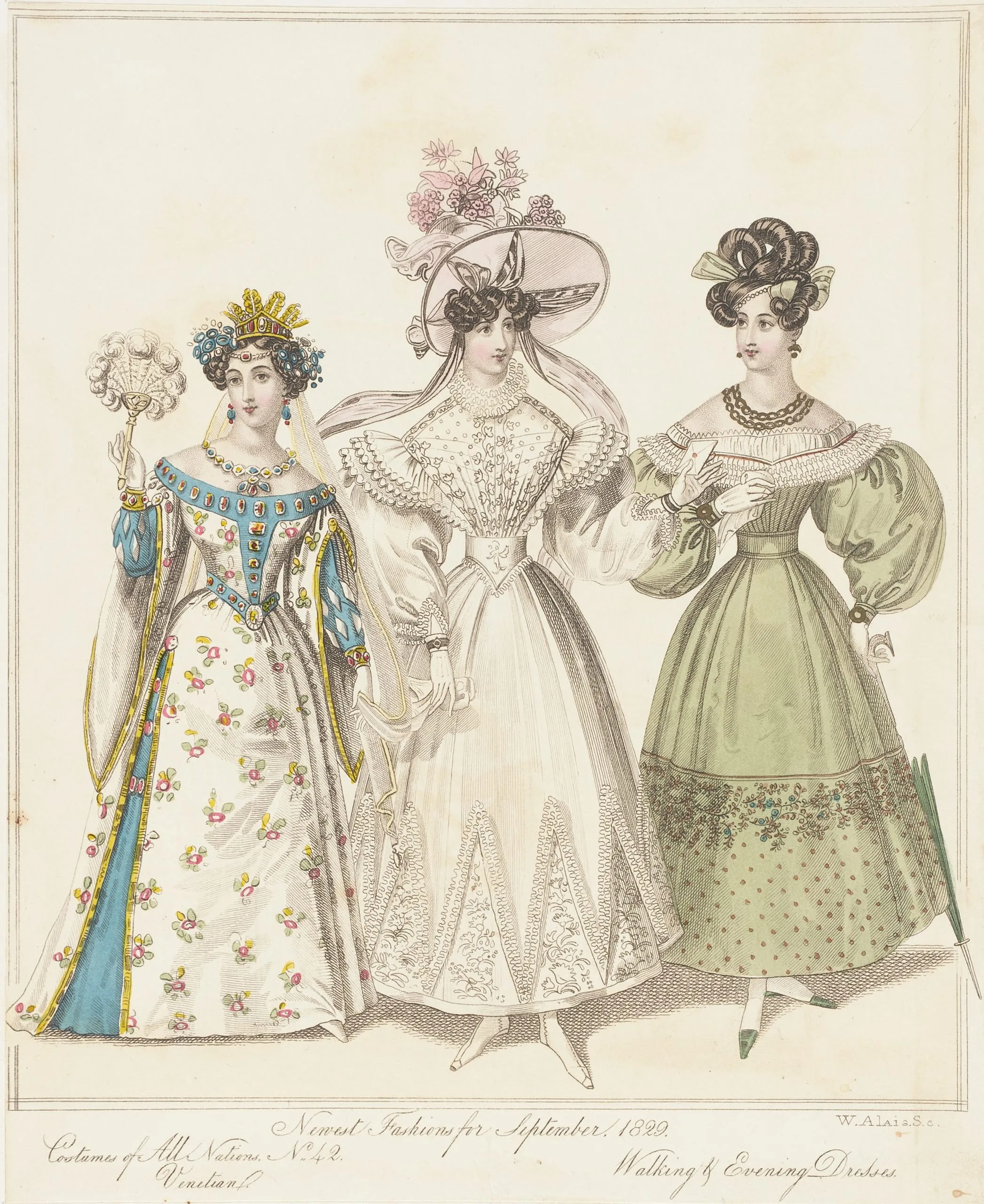 - Fashion Plate, 'Costumes of All Nations, Venitian Walking & Evening Dresses' for 'The World of Fashion and Continental Feuilletons'