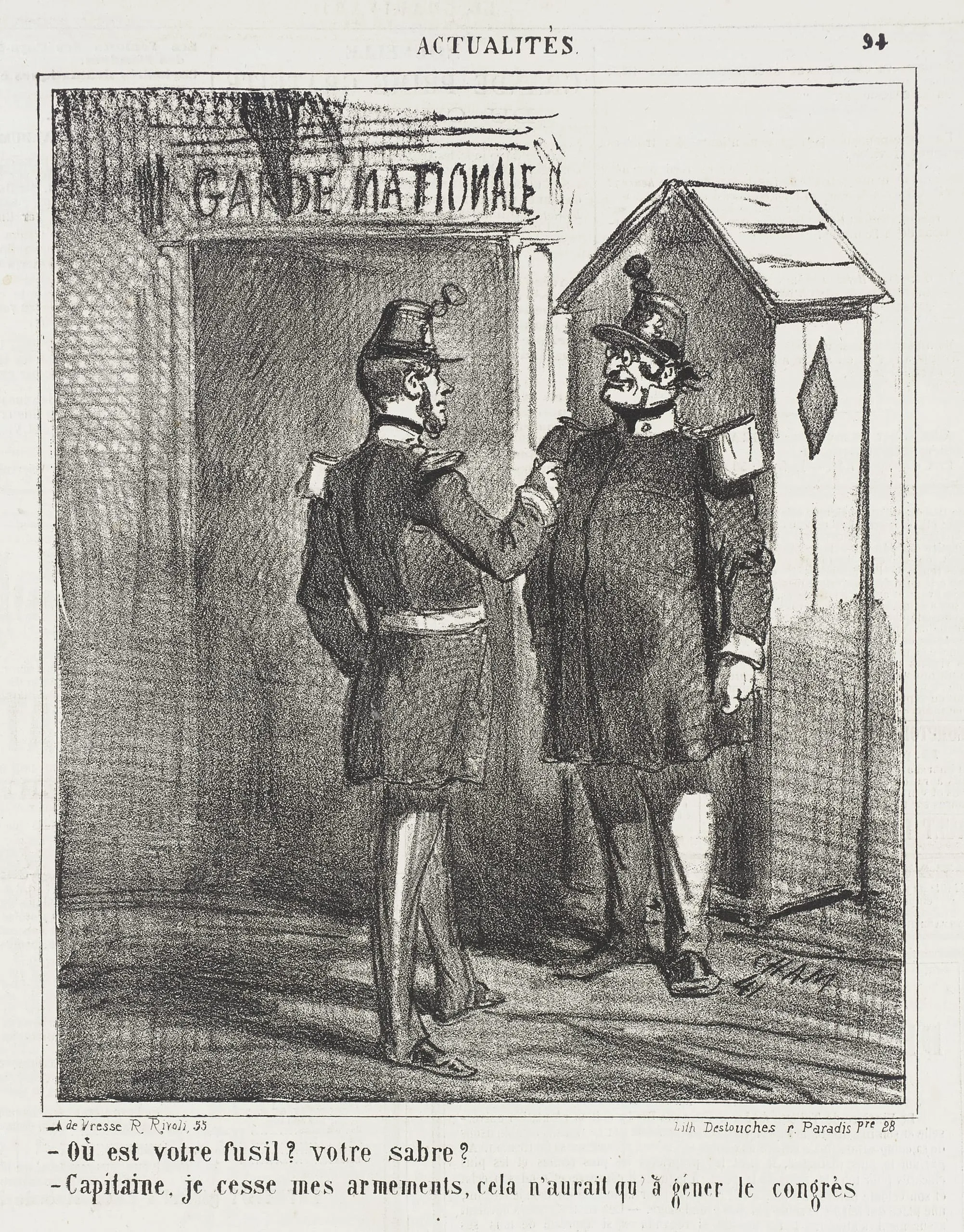 - Guarde Nationale -Où est votre fusil? Votre sabre? -Capitaine, je cesse mes armements, cela n'aurait qu'à géner le congrès.