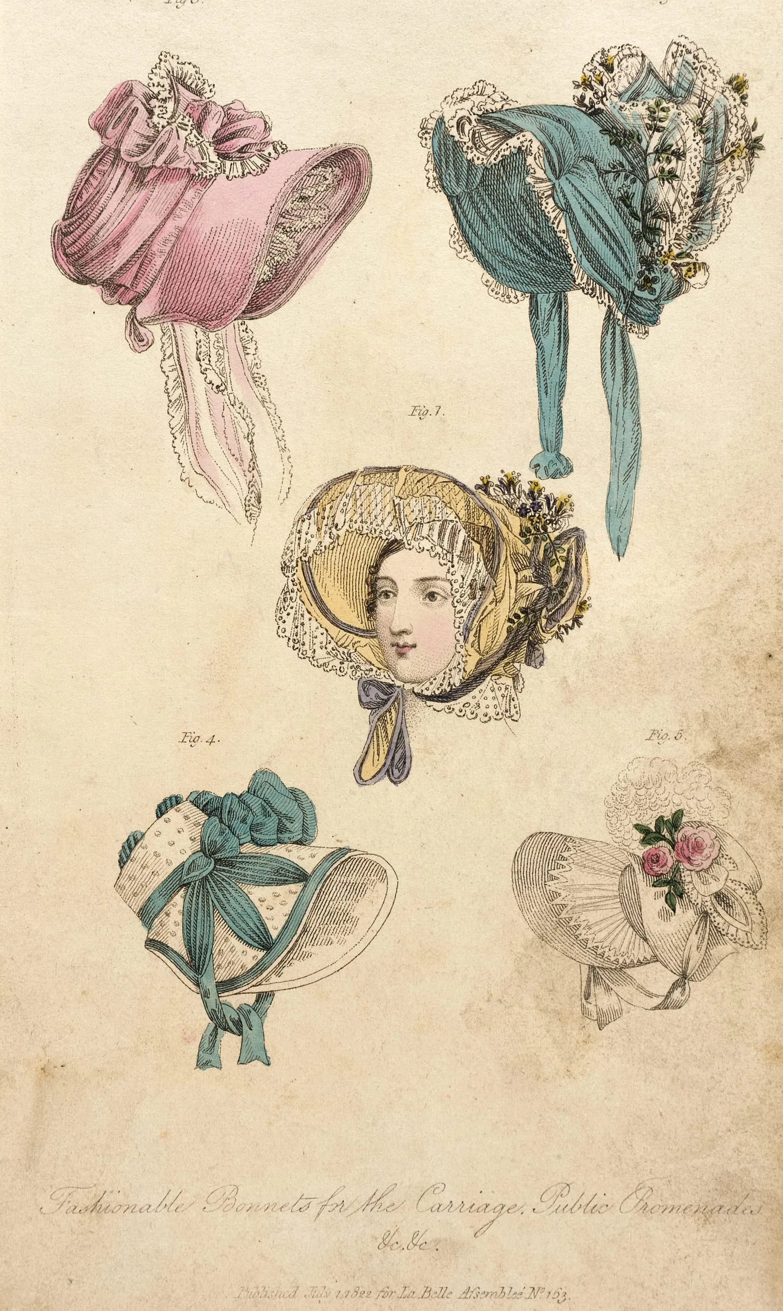- Fashion Plate, 'Fashionable Bonnets for the Carriage & Public Promenades' for 'La Belle Assemblée'