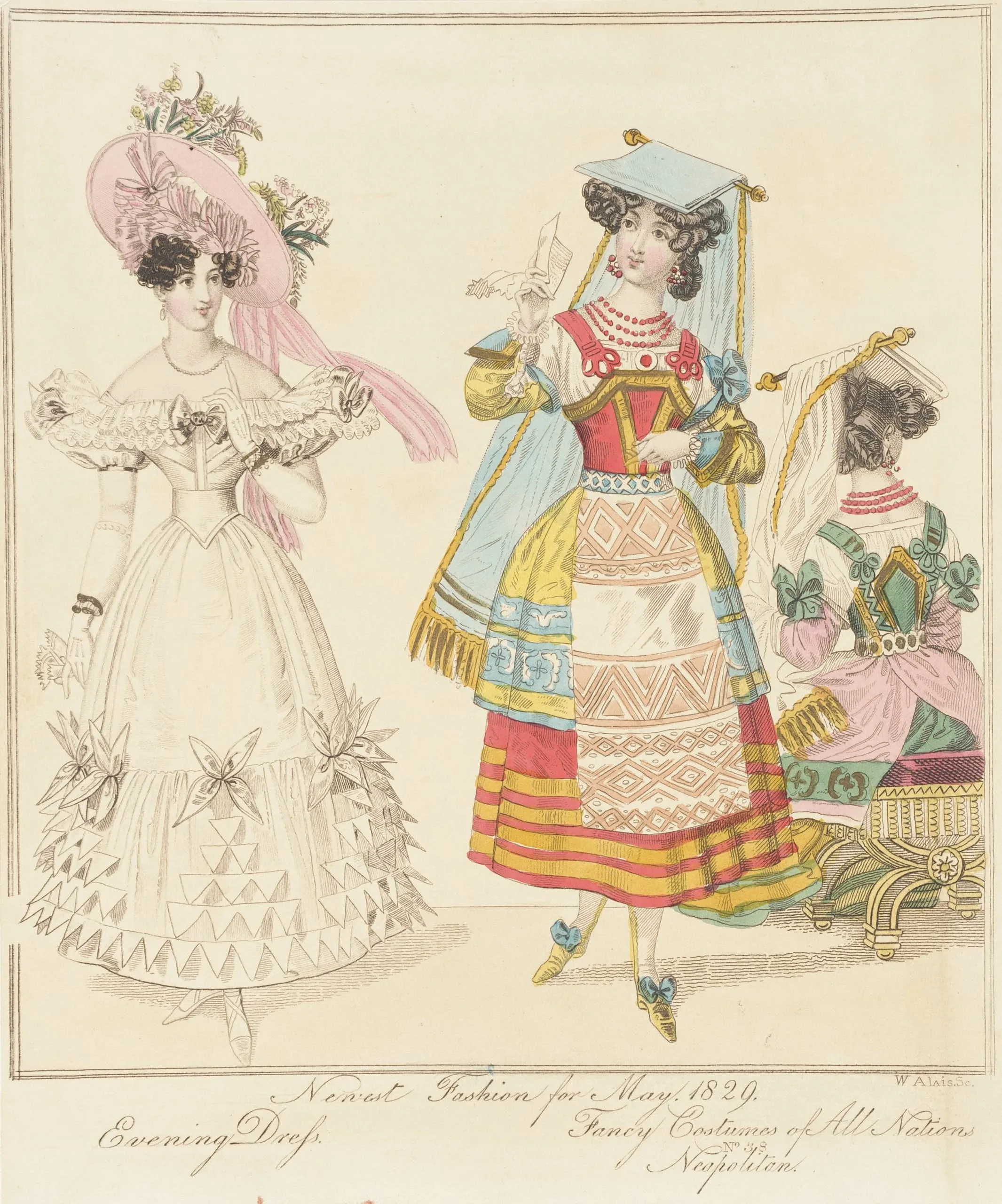 - Fashion Plate, 'Evening Dress, Fancy Costumes of All Nations, Neopolitan' for 'The World of Fashion and Continental Feuilletons'