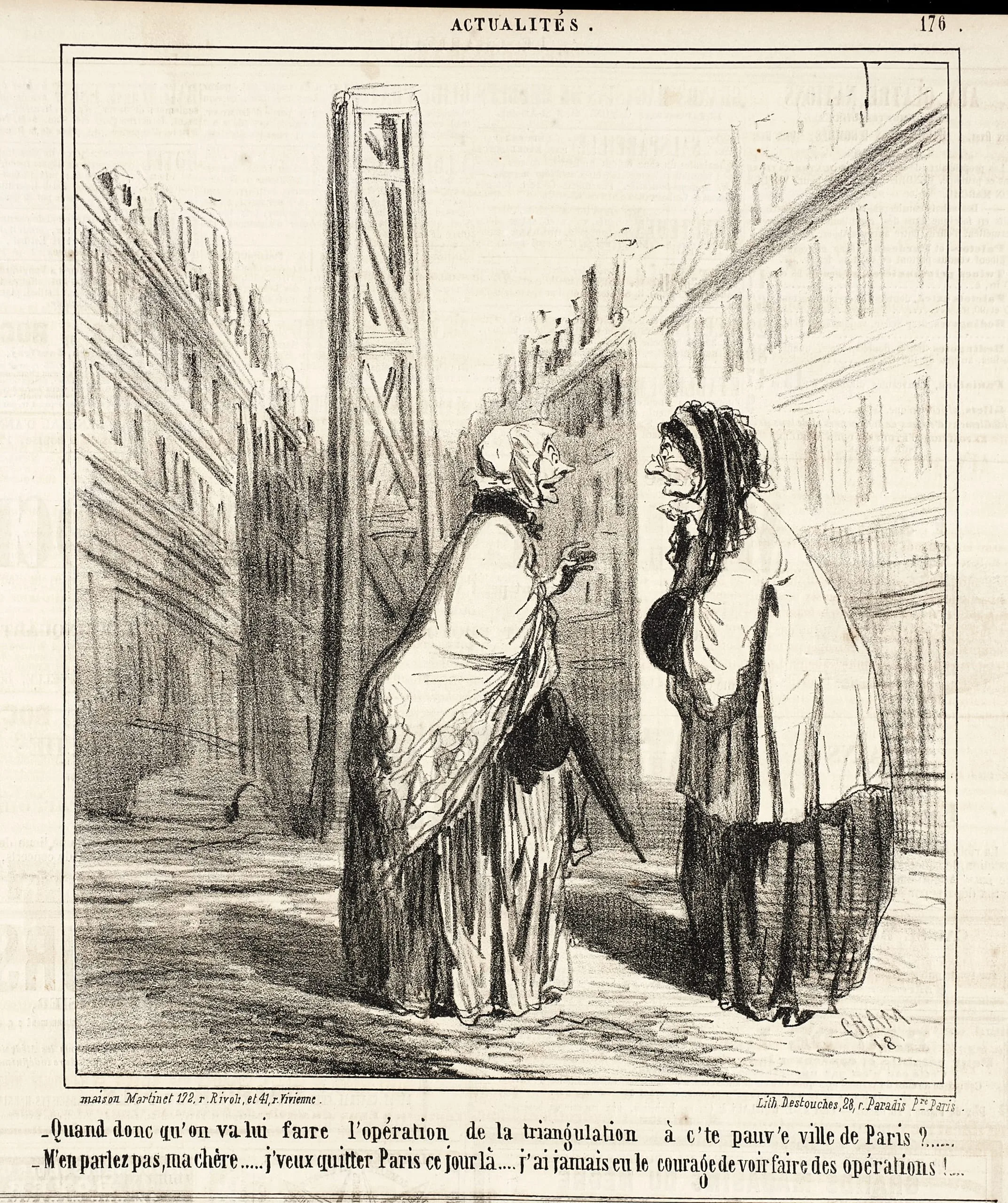 - Quand donc qu'on va lui faire l'opération de la triangulation à c'te pauv'e ville de Paris? M'en parlez pas ma chère...j'veux quitter Paris ce jour là, j'ai jamais eu le courage de voir faire des opérations!