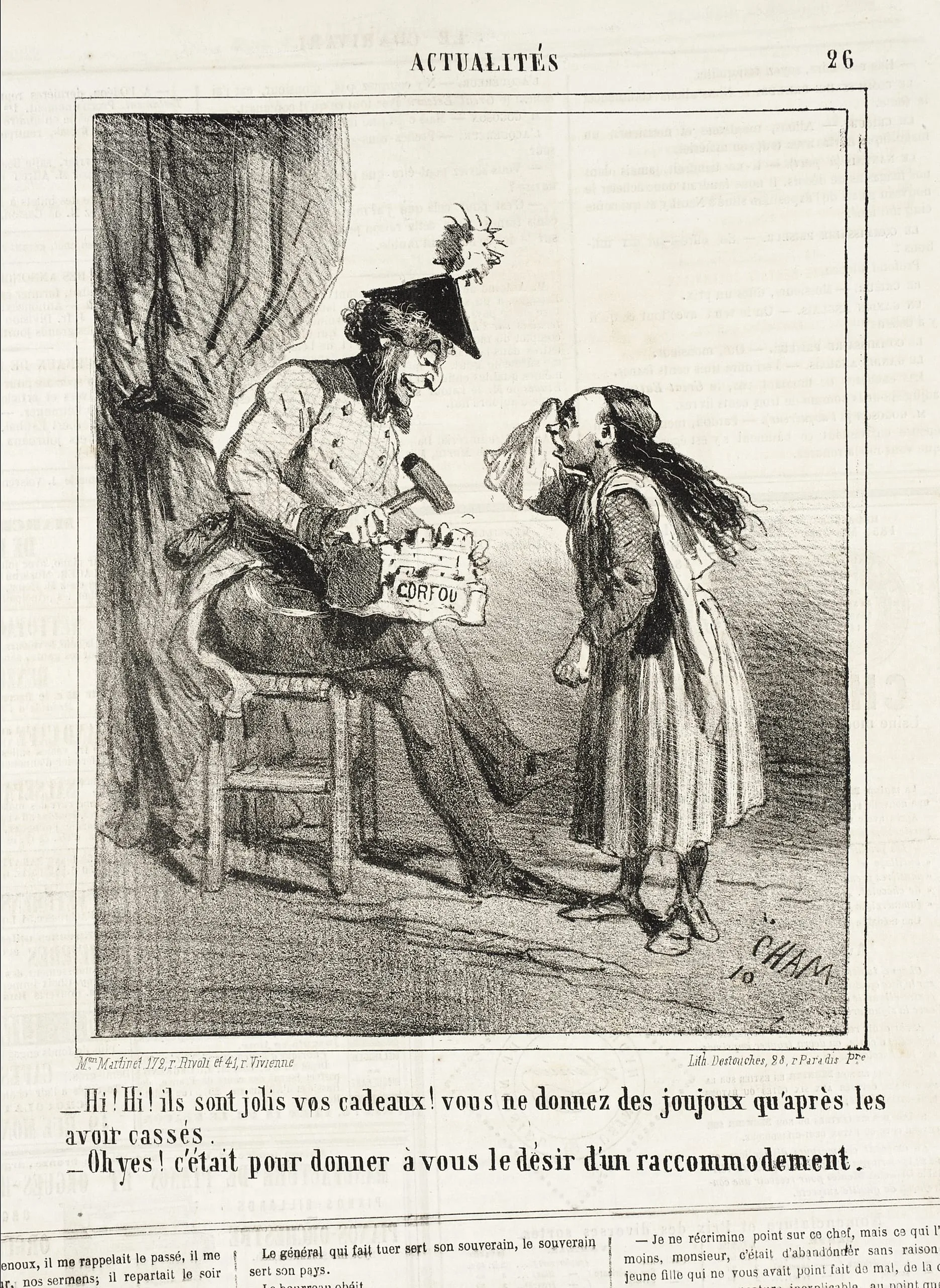 - Hi! Hi! Ils sont jolis vos cadeaux! Vous ne donnez des joujoux qu'après les avoir cassés (Corfu) -Oh Yes! C'etait pour donner à vous le désir d'un raccommodement.