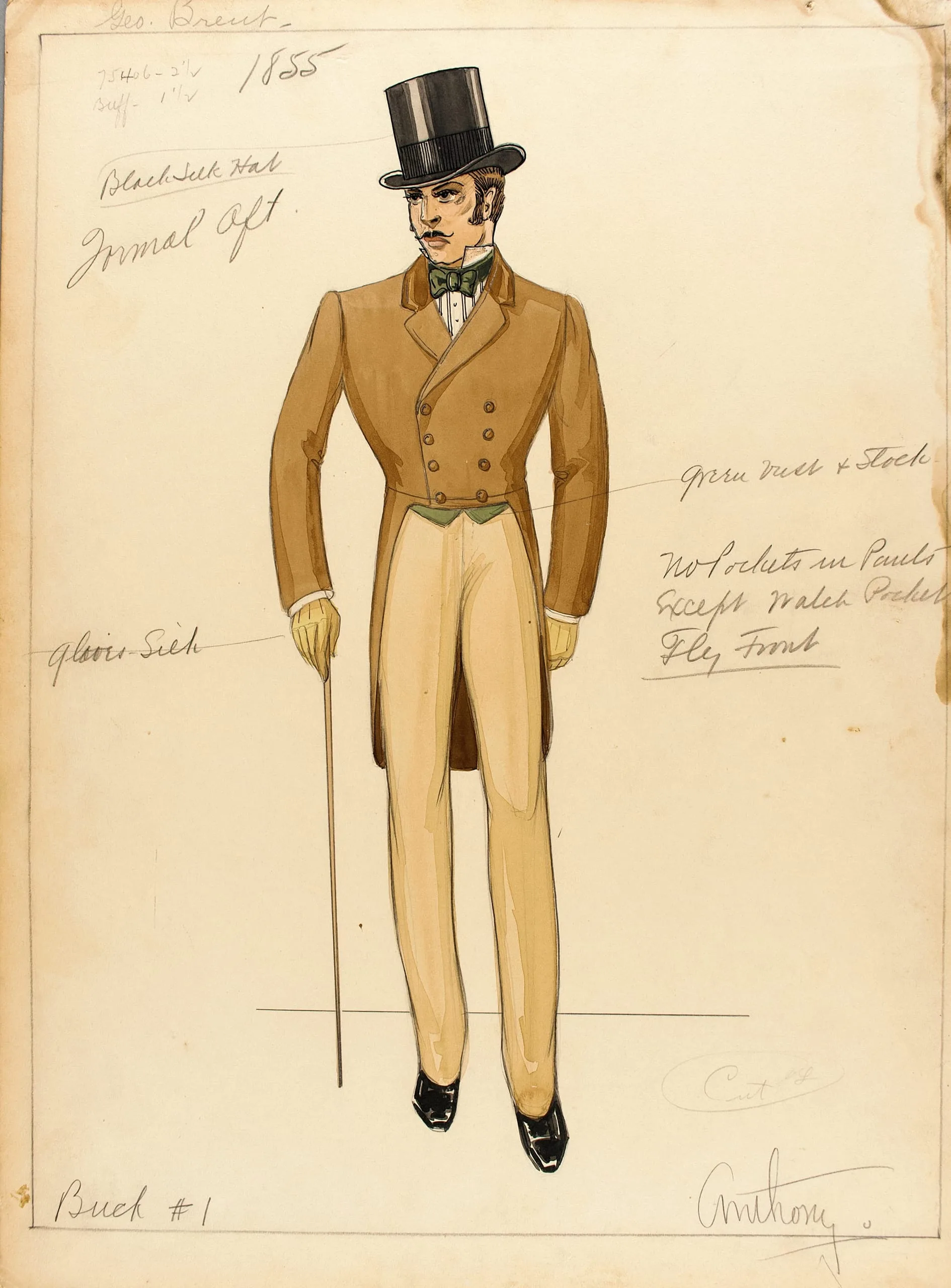 - Costume Sketch of George Brent as Buck Cantrell in the Warner Brothers Production, 'Jezebel'
