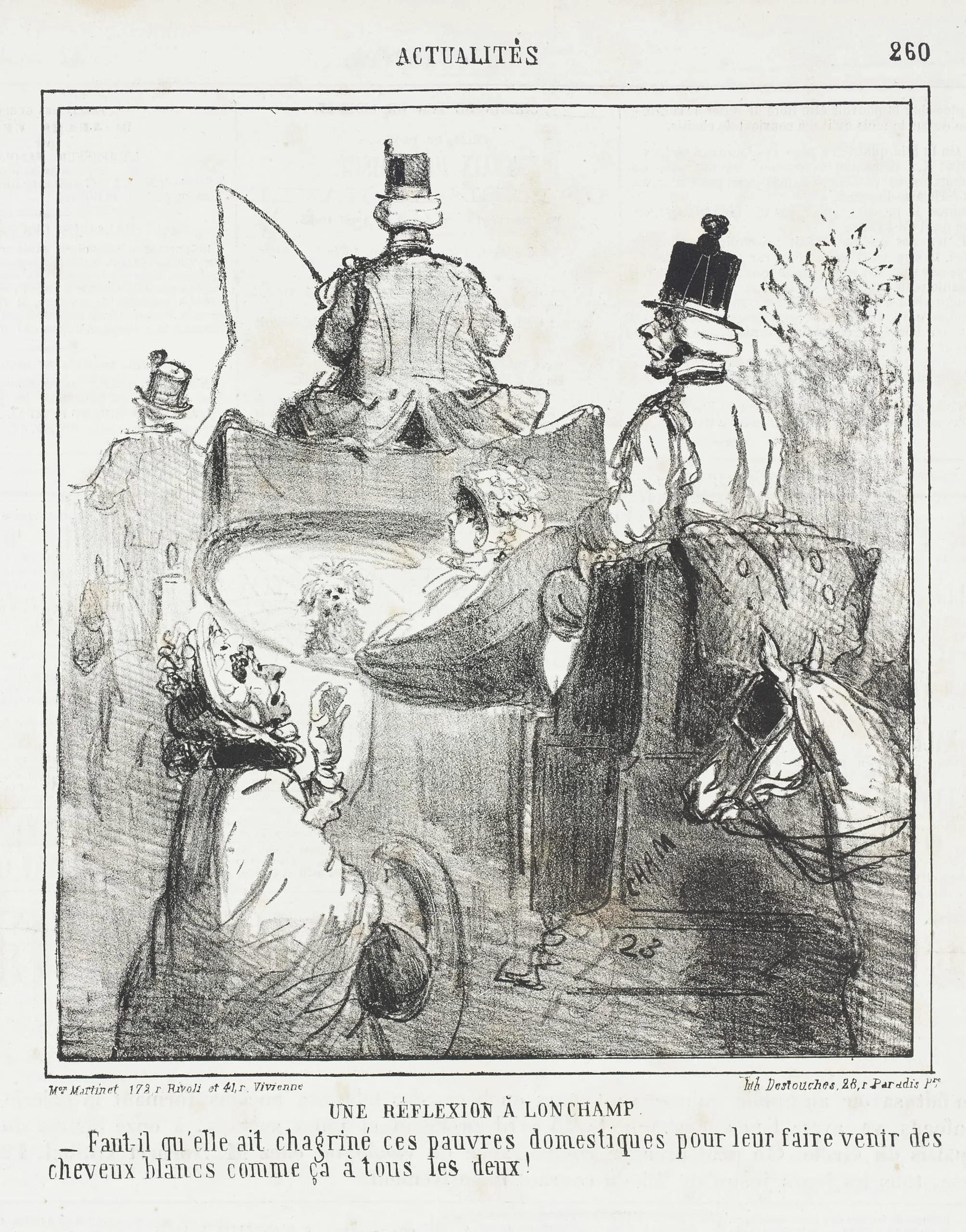 - Une Réflection à Lonchamp. Faut-il qu'elle ait chagriné pauvres domestiques pour leur faire venir des cheveux blancs comme ça à tous les deux!