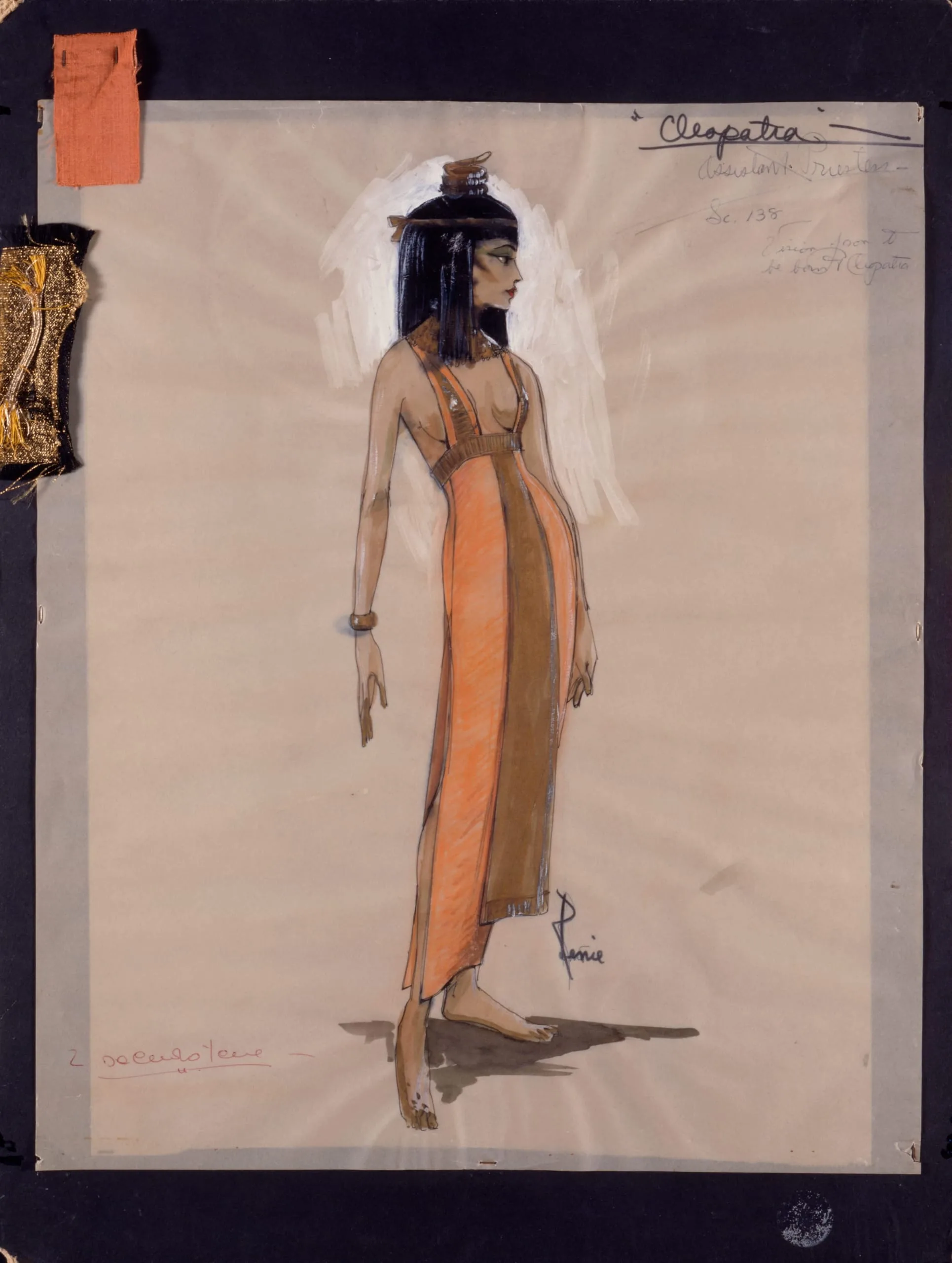 - Costume Sketch of Assistant Priestess of the Nile in the Twentieth Century-Fox Film 'Cleopatra' with Swatch
