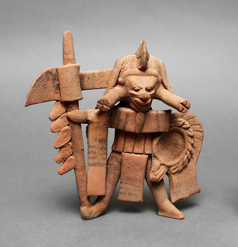 Warrior with Feathered Shield and Bladed Weapon