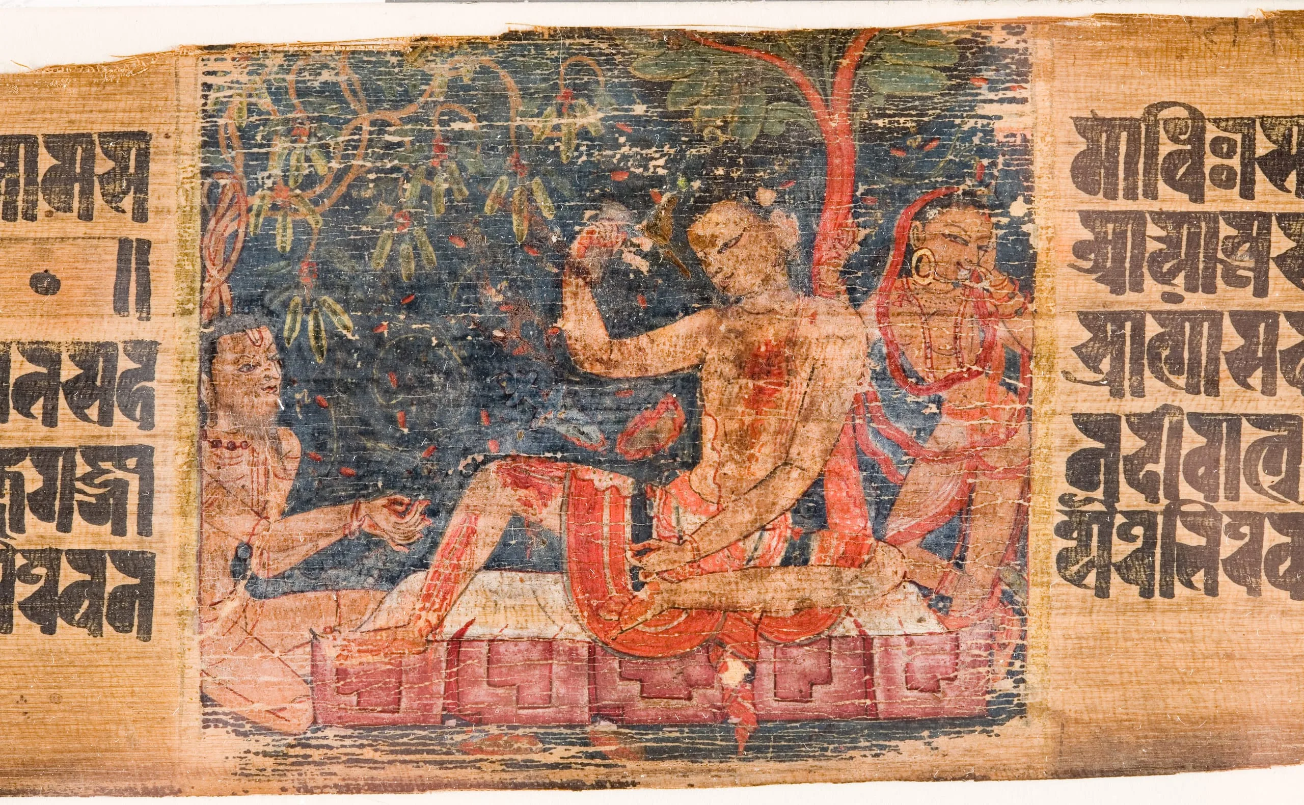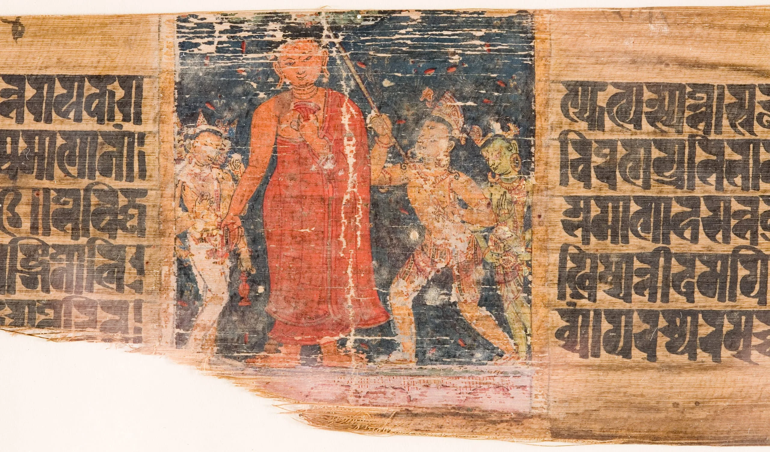 - Ink and opaque watercolor on palm leaf