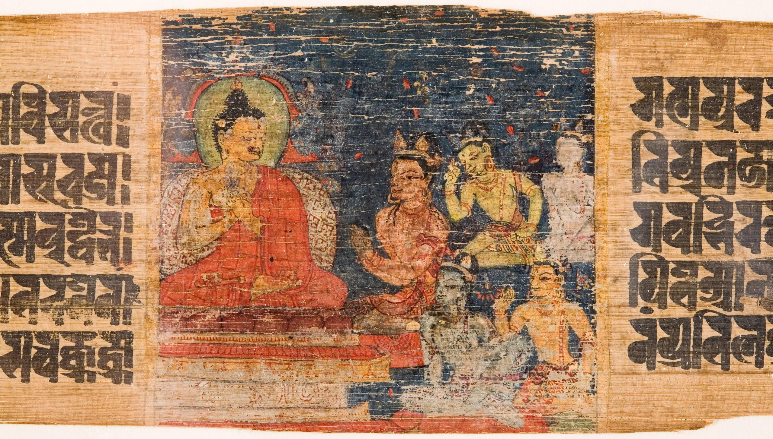 - The Buddha's Descent from Heaven at Samkashya (top; a), The Story of the Bodhisattva Sadaprarudita (middle; b), The Buddha Preaching to the Assembled Gods (bottom; c), Three Folios from a Prajnaparamita (The Perfection of Wisdom)?