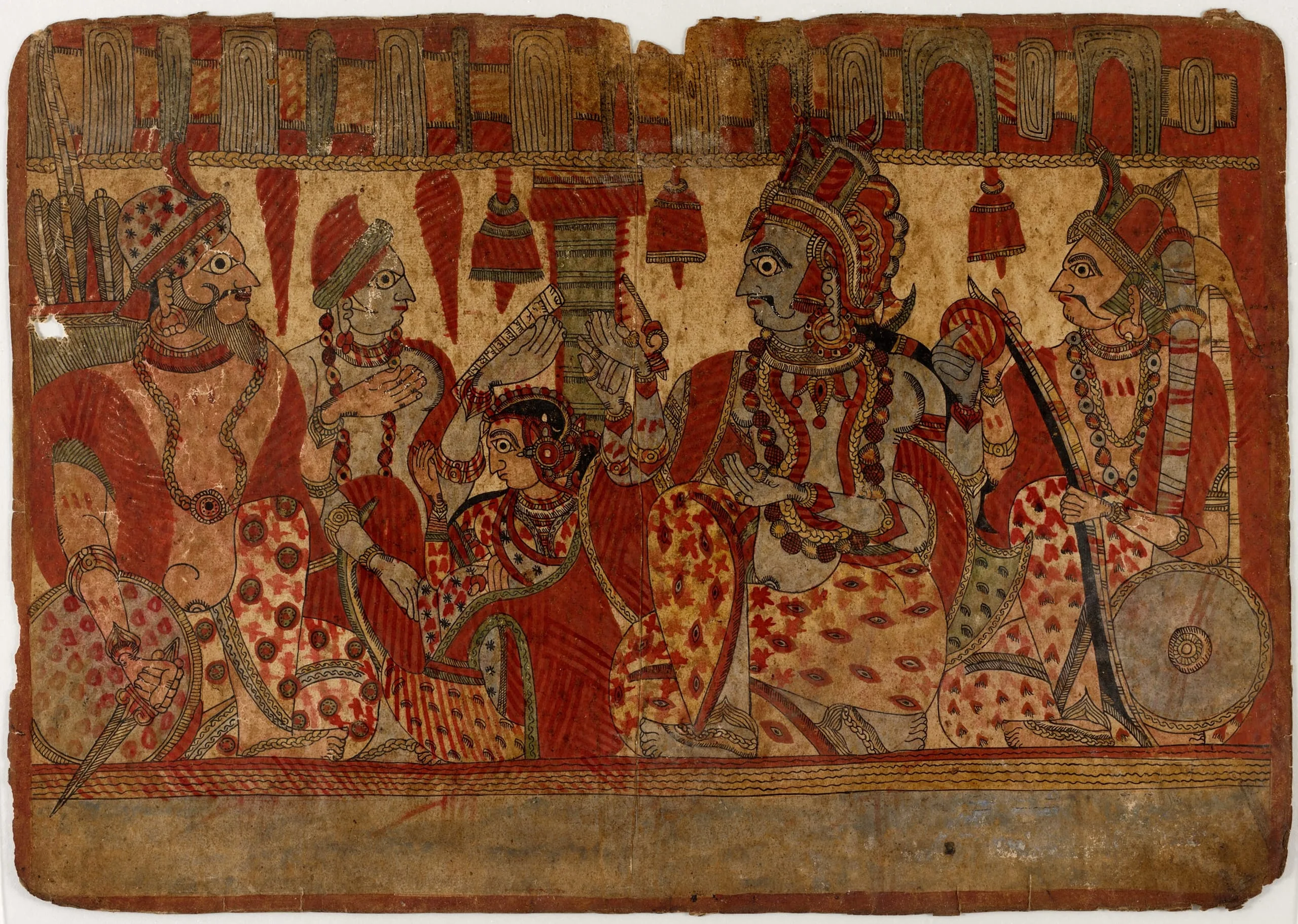 - Unidentified Scene- Meeting of Duryodhana and Vatsala's Father (?), Scene from the Story of the Marriage of Abhimanyu and Vatsala, Folio from a Mahabharata ([War of the] Great Bharatas)