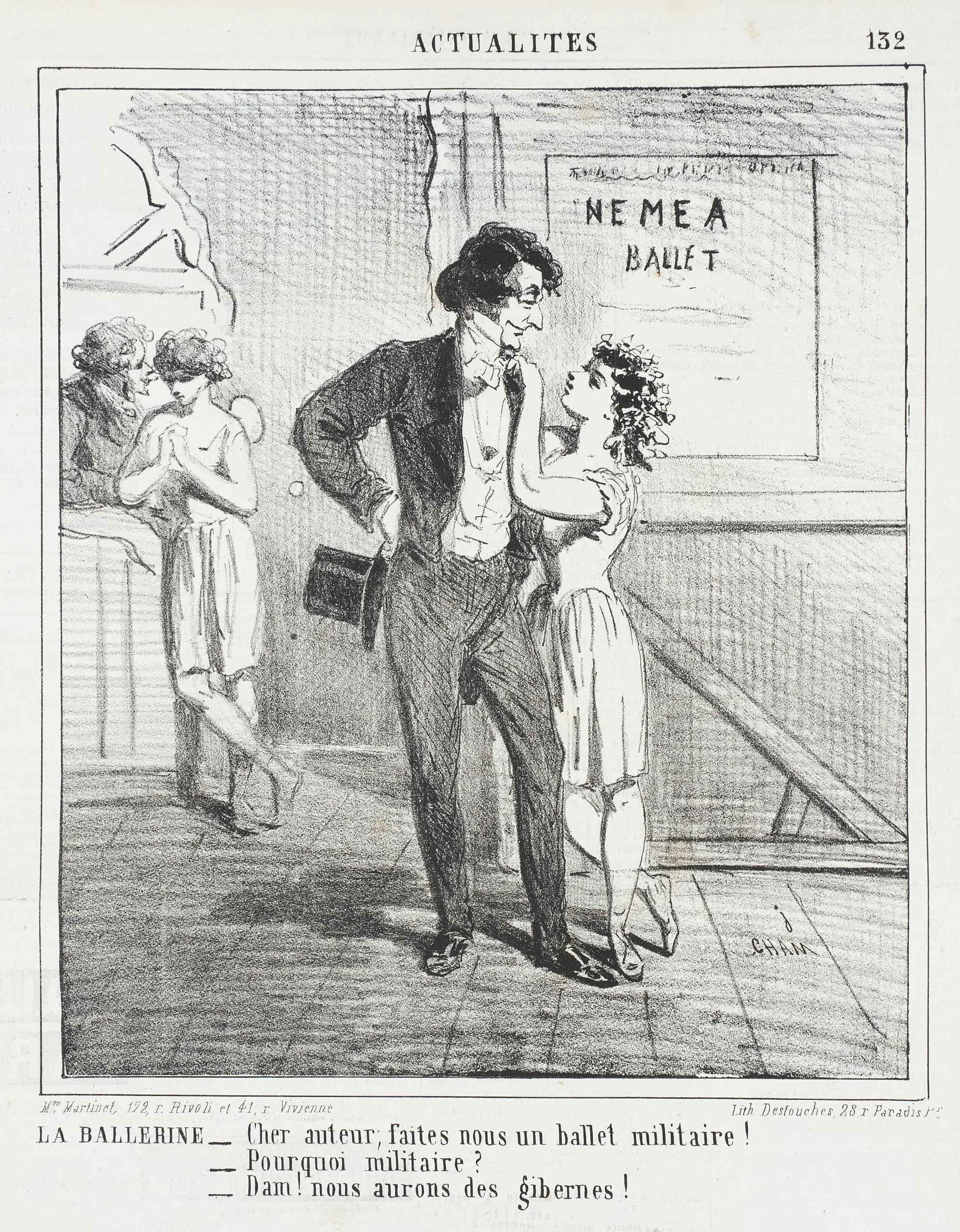 - La ballerine: Cher auteur, faites nous un ballet militaire! -Pourquoi militaire? -Dam! Nous aurons des gibernes!