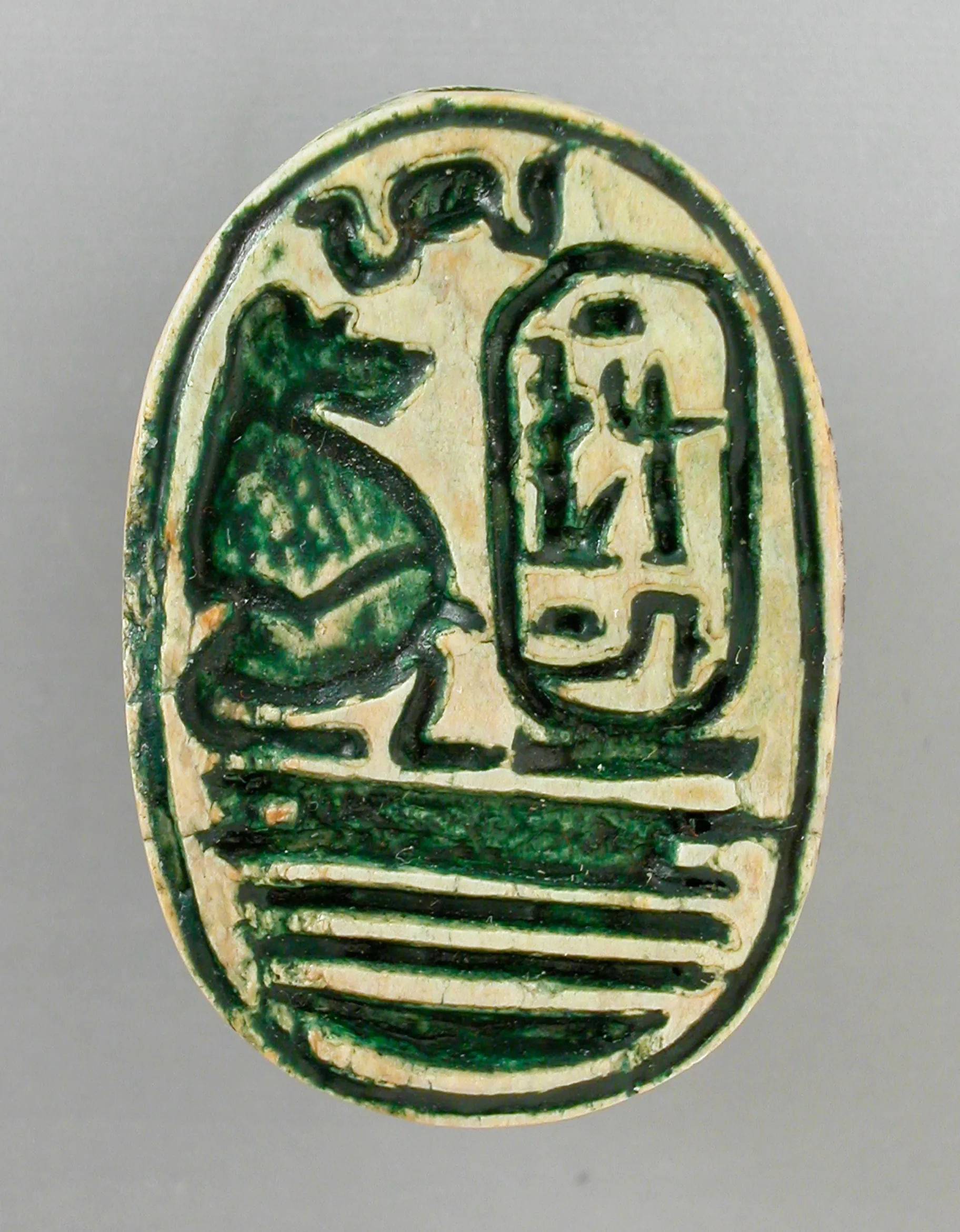 - Scarab Depicting a Baboon before the Throne Name of Ramses II