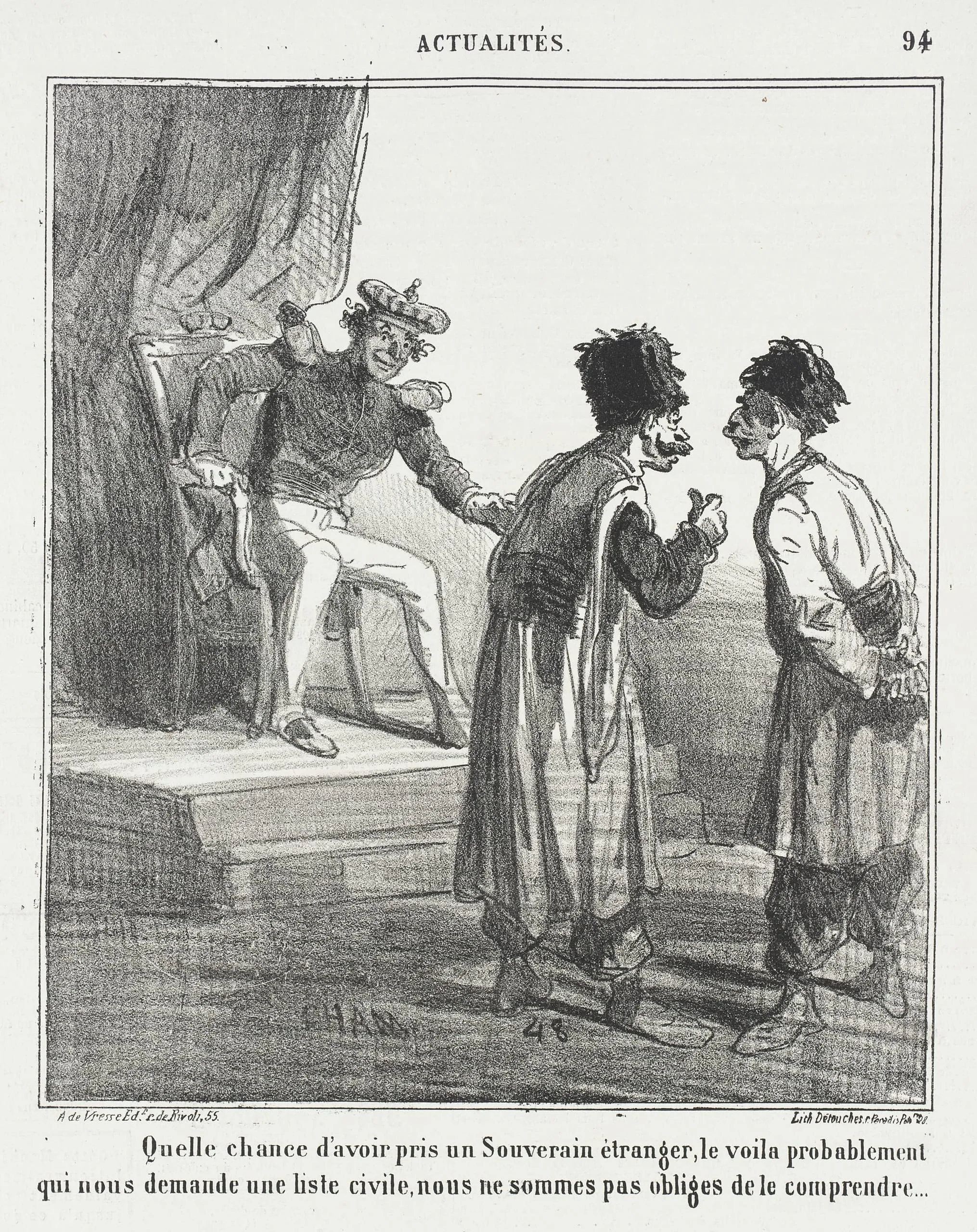 - Qu'elle chance d'avoir pris un Souverain étranger, le voila probablement qui nous demande une liste civile, nous ne sommes pas obliges de le comprendre.