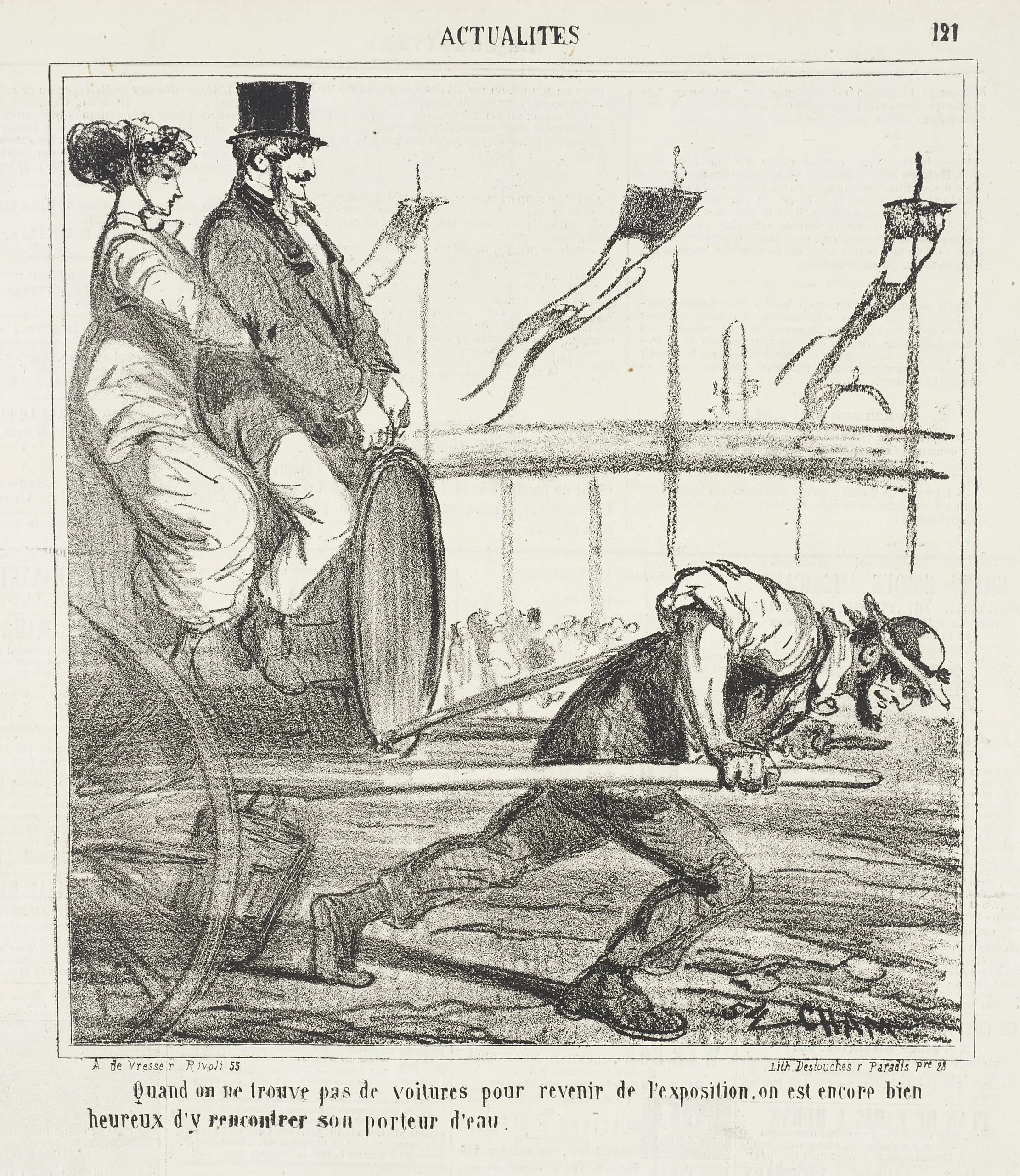 - Quand on ne trouve pas de voitures pour revenir de l'exposition, on est encore bien heureux d'y rencontrer son porteur d'eau.