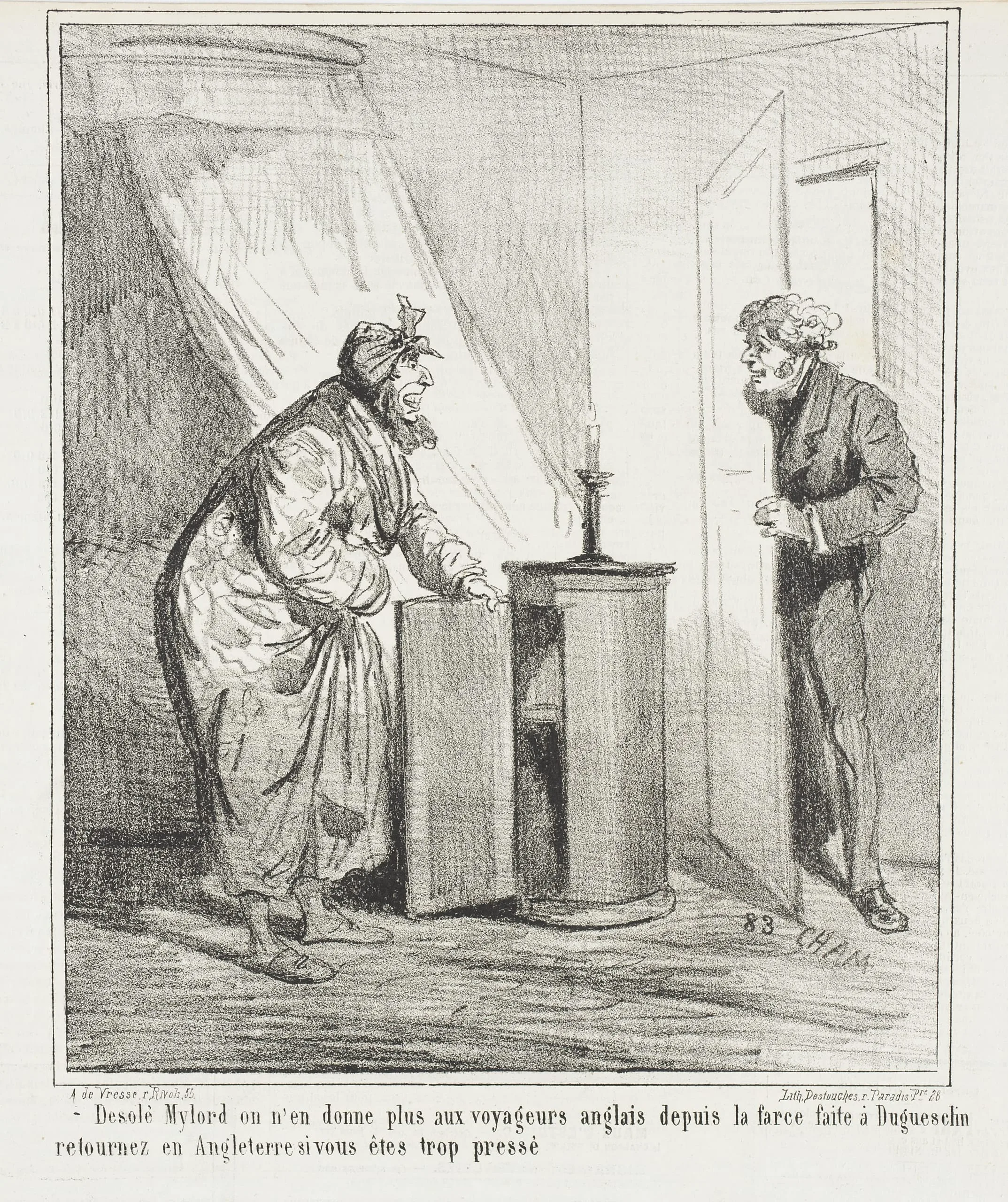 - Desolé Mylord on n'en donne plus aux voyagers anglais depuis la farce faite à Duguesclin. -Retournez en Angleterre si vous êtes trop pressé.