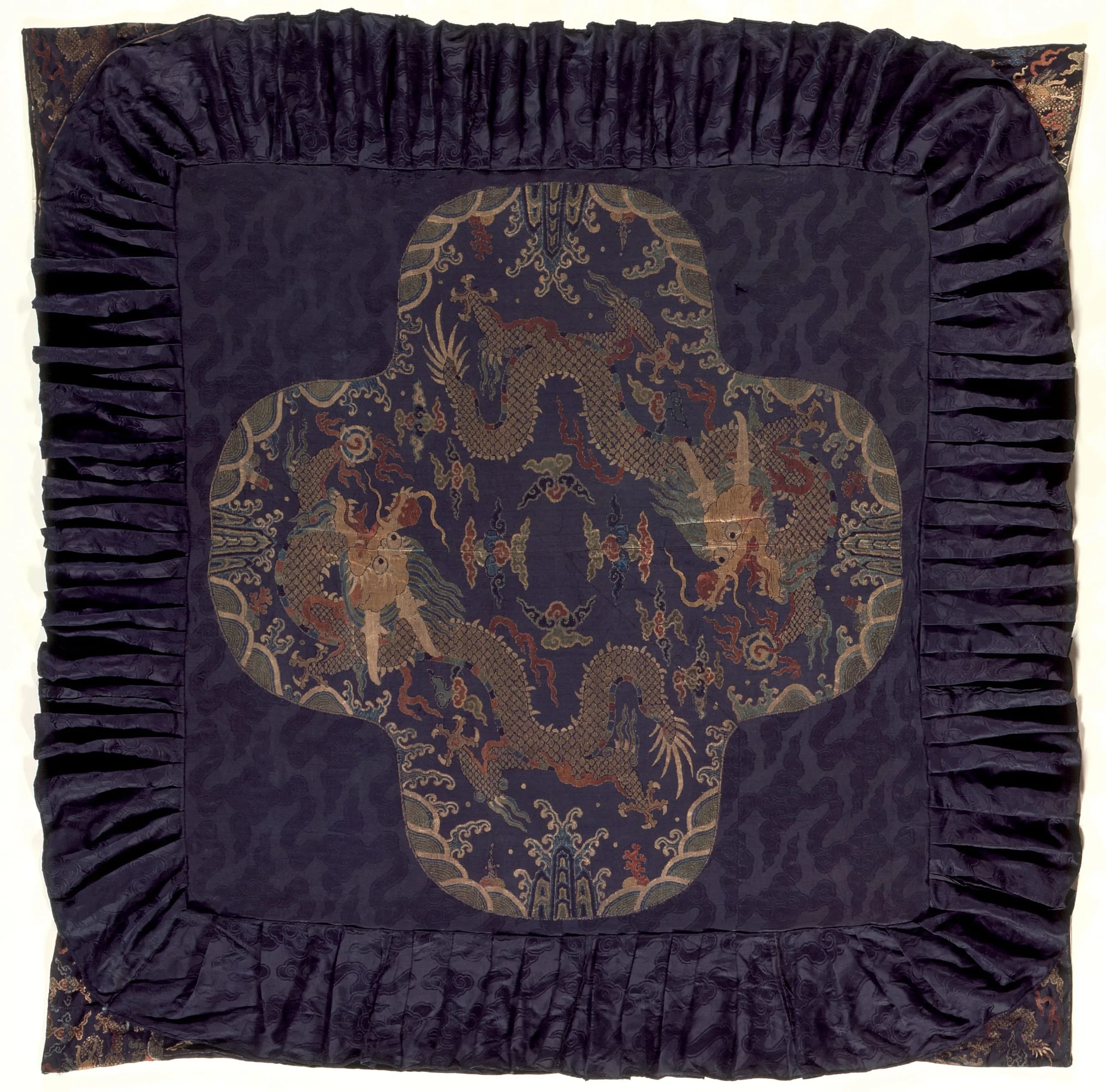 - Polychrome silk and metallic thread; supplementary weft on satin-weave damask ground