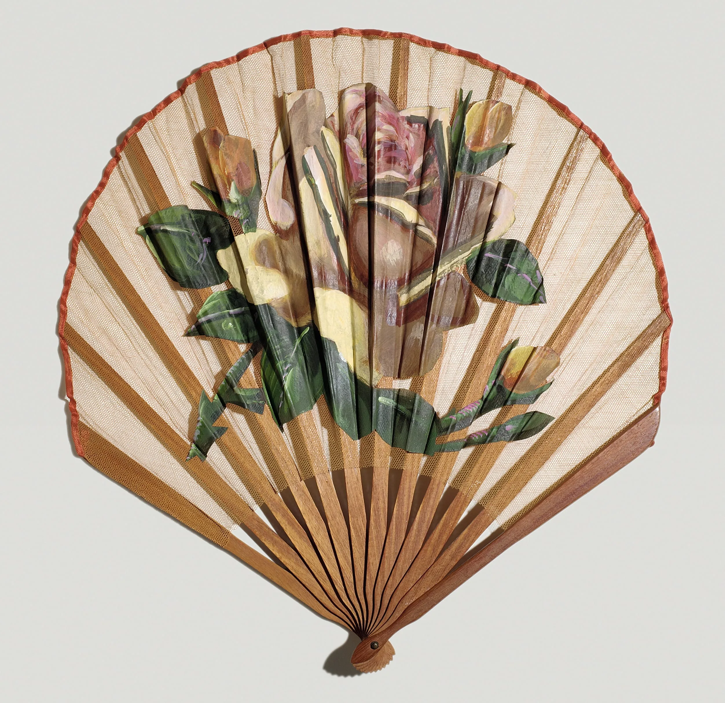 - Painted silk leaf, wood sticks, metal rivet
