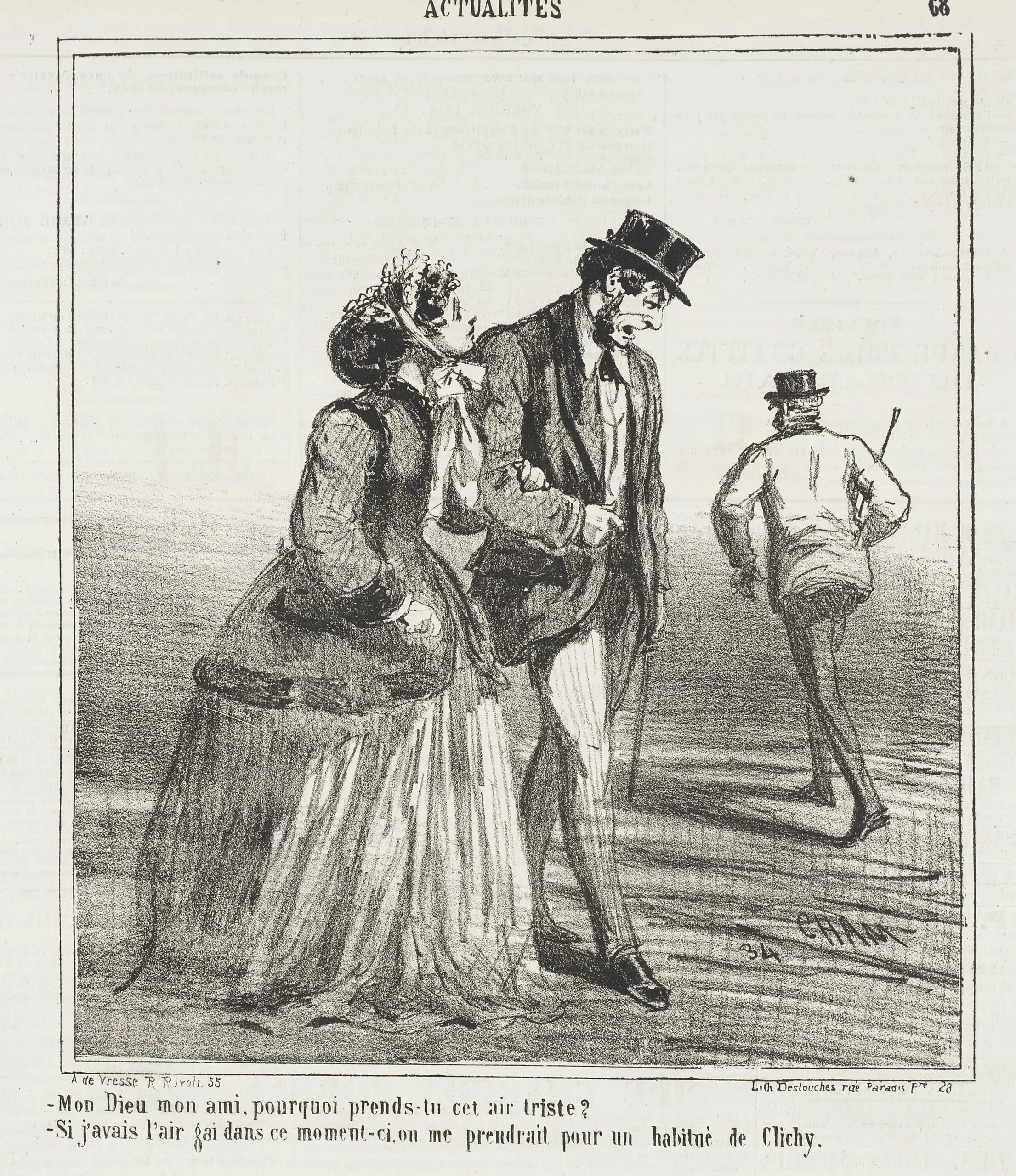 - Mon Dieu, mon ami, pourquoi prends tu cet air triste? -Si j'avais l'air gai dans ce moment-ci, on me prendrait pour un habitué de Clichy.