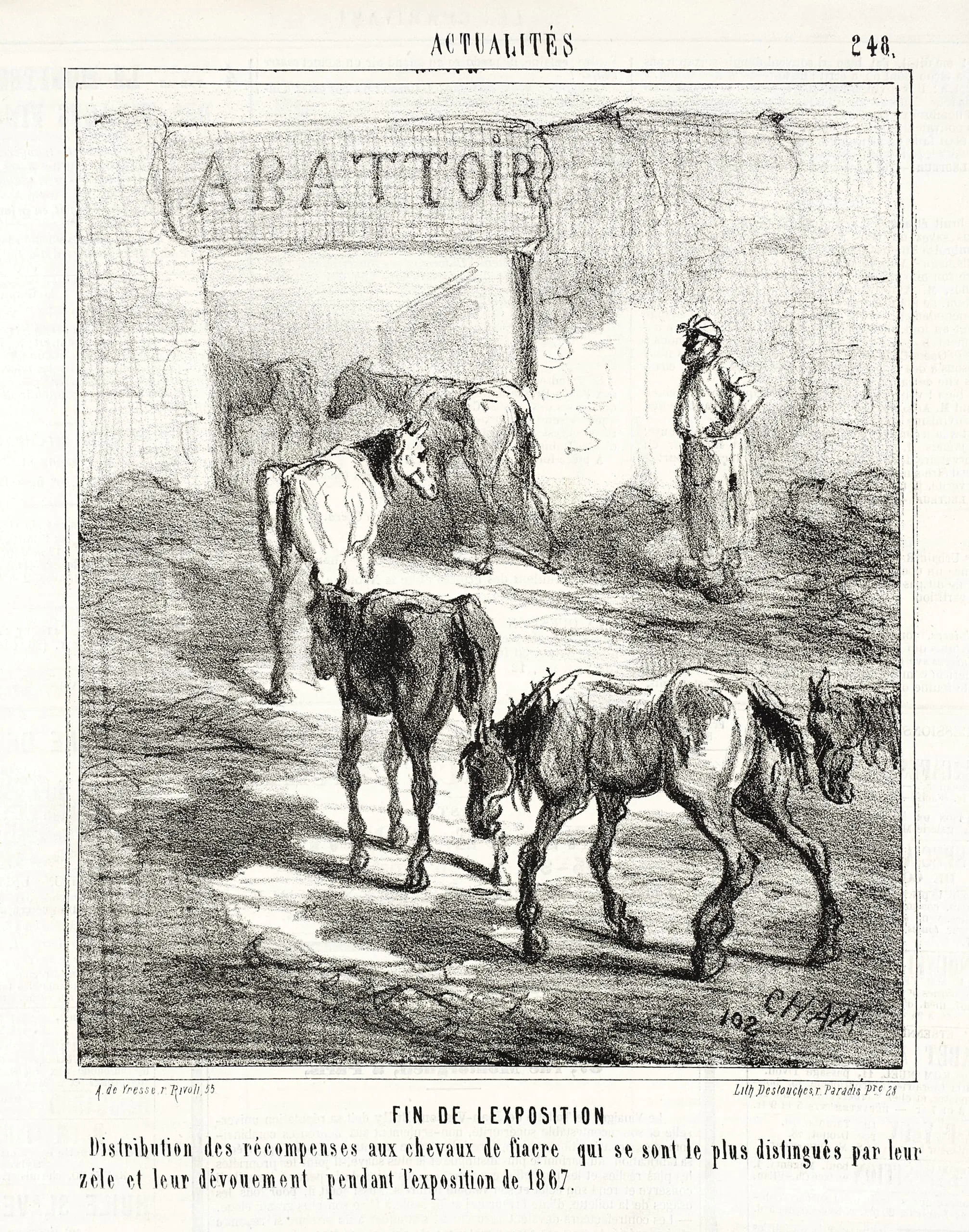 - Fin de l'exposition. Distribution des récompenses aux chevaux de fiacre qui se sont le plus distingués par leur zèle et leur dévouement pendant l'exposition de 1867