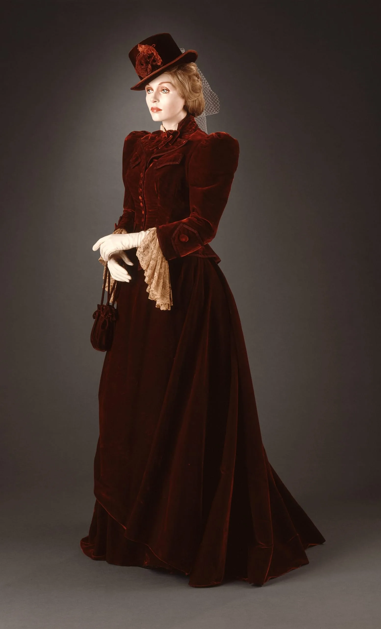 - Jacket; silk velvet, linen lace, silk braid; Skirt: silk velvet; Petticoat: silk plain weave, silk plain weave (organza)