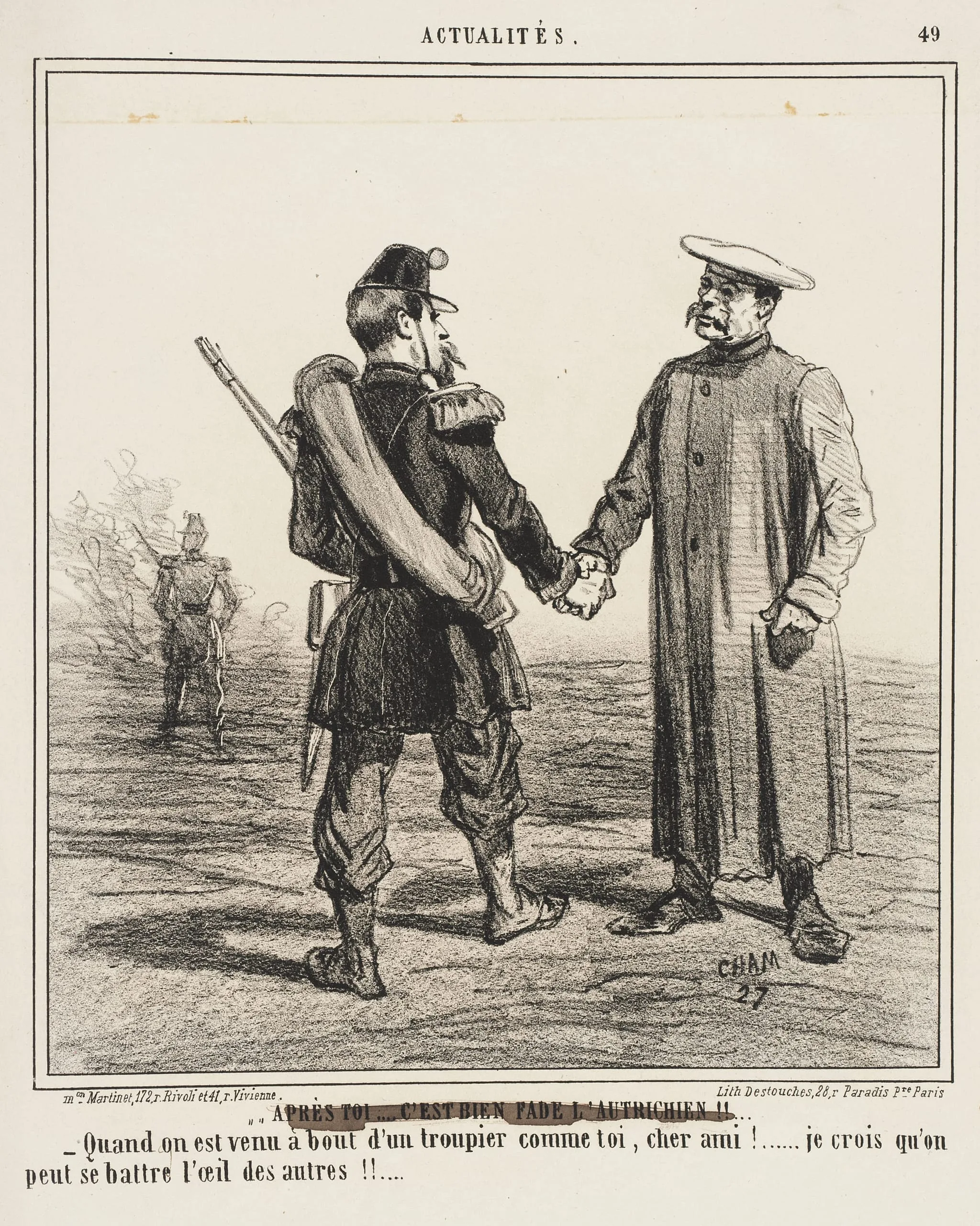 - Quand on est venu à bout d'un troupier comme toi, cher ami!...Je crois qu'on peut se battre l'oeuil des autres!!